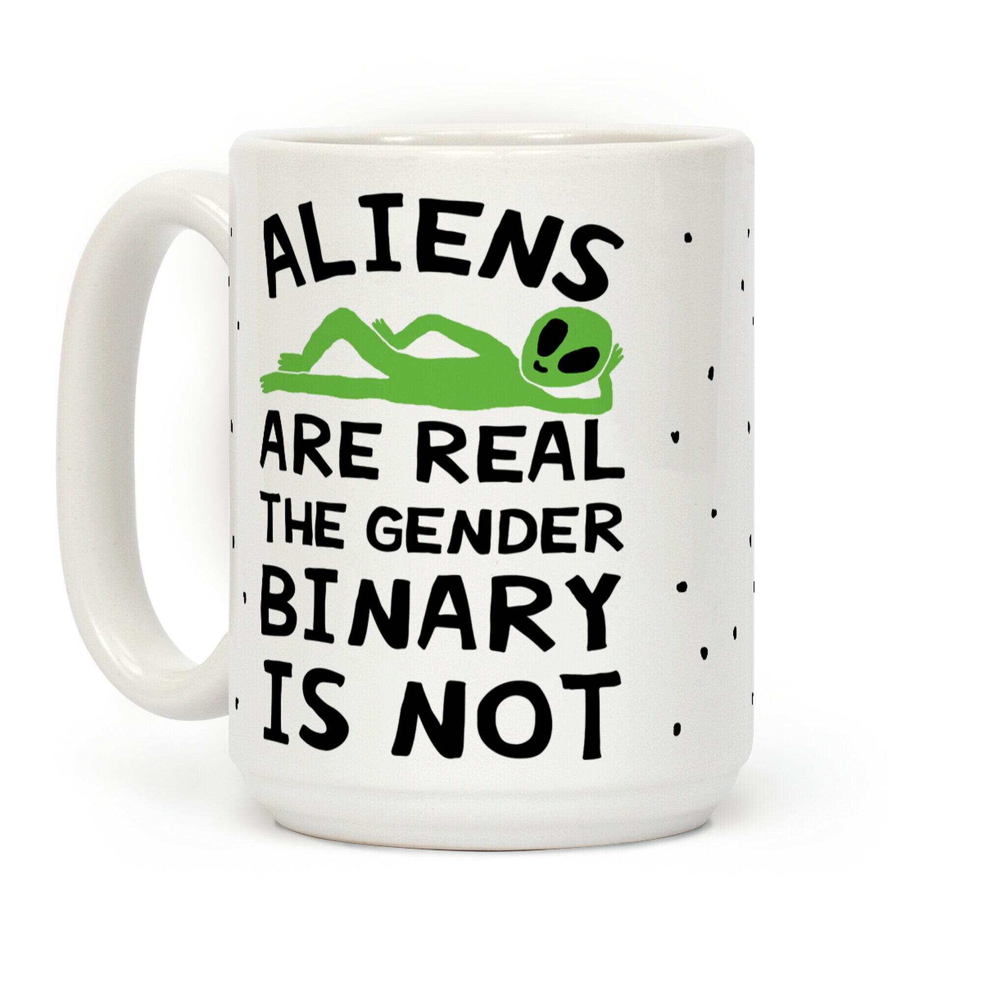 Show off your love of space and sci-fi with this alien believer's, anti gender binary, anti gender roles coffee mug!...
