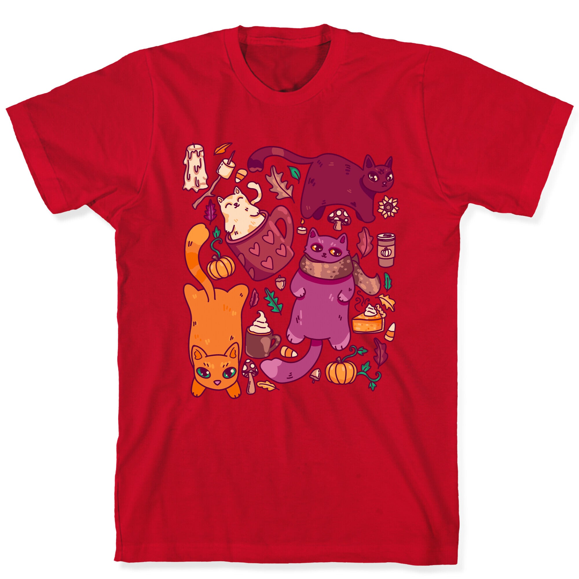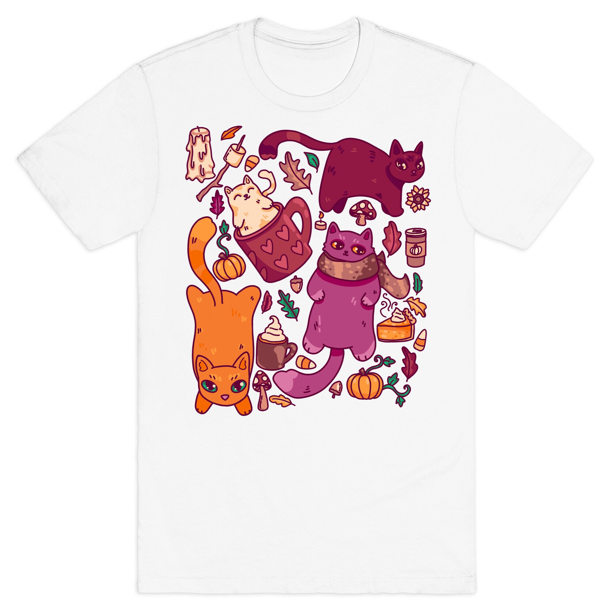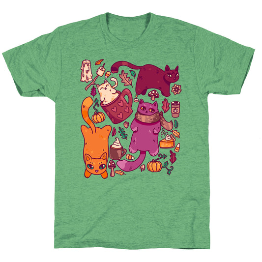 Fall Cats Pattern T-Shirt