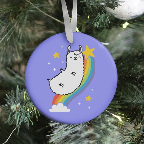 Llama On A Rainbow Ornament
