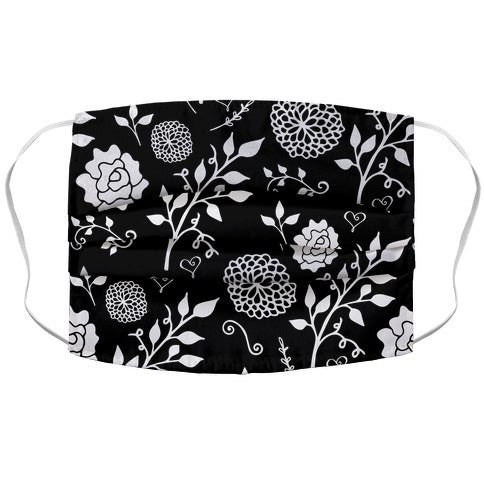 Black Floral Pattern Flat Face Mask