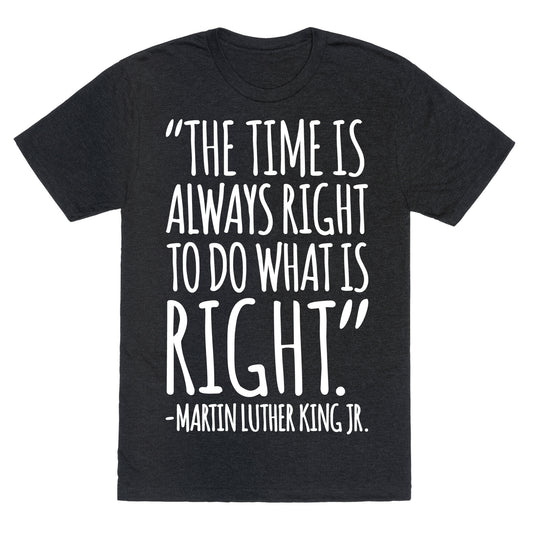 The Time Is Always Right To Do What Is Right MLK Jr. Quote White Print Unisex Triblend Tee