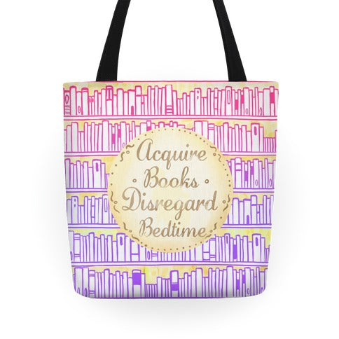 Acquire Books. Disregard Bedtime. Tote Bag
