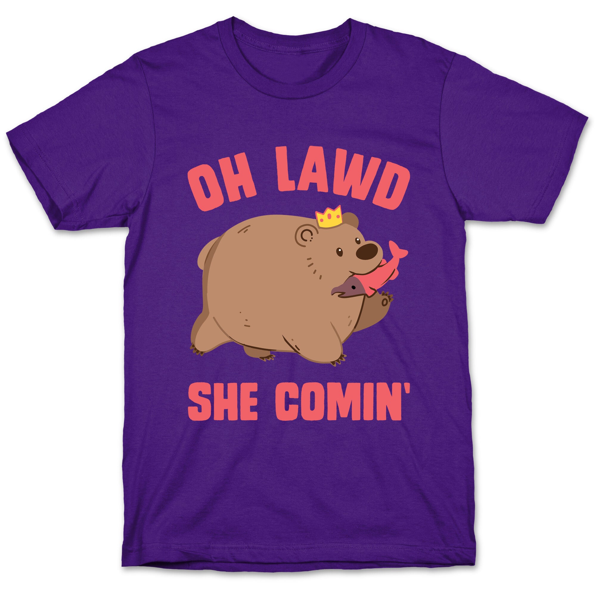 Introducing the OH LAWD SHE COMIN' Bear t-shirt - a hilarious addition to your wardrobe. The bear on this shirt...