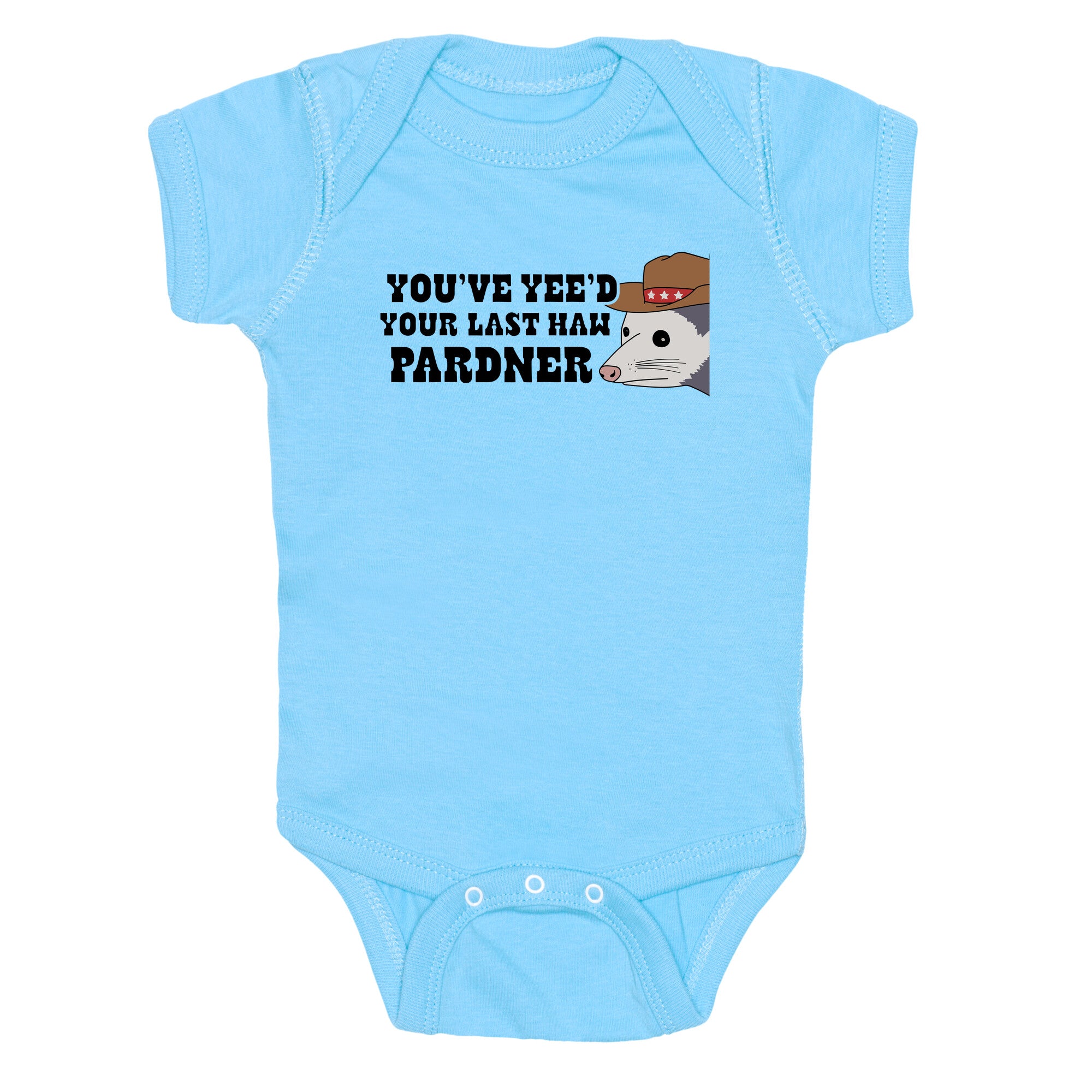 A cute possum delivers big Wild West attitude with the cheeky phrase "Youve yeed your last haw, pardner." Perfect for...