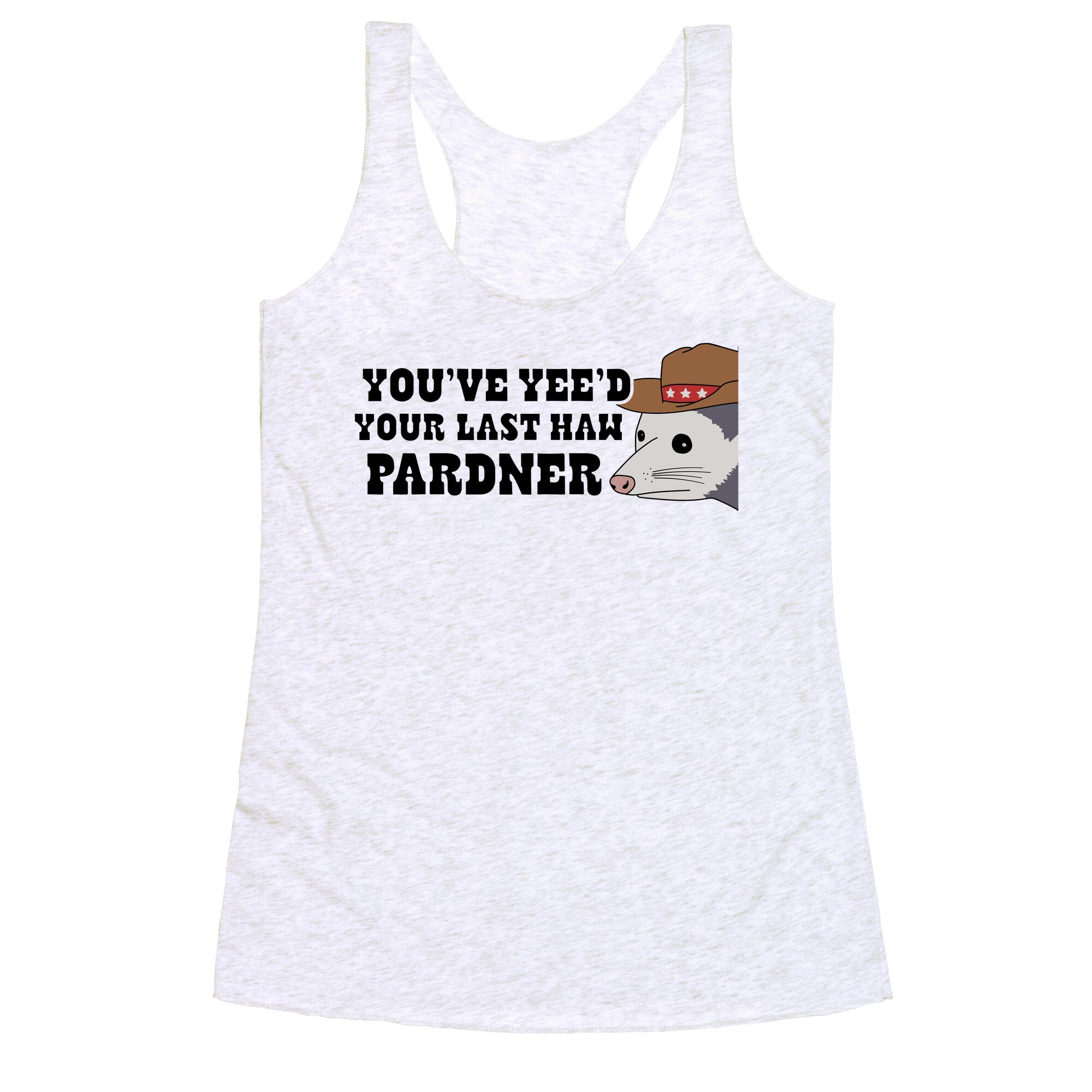 Youve yees your last haw pardner racerback tank