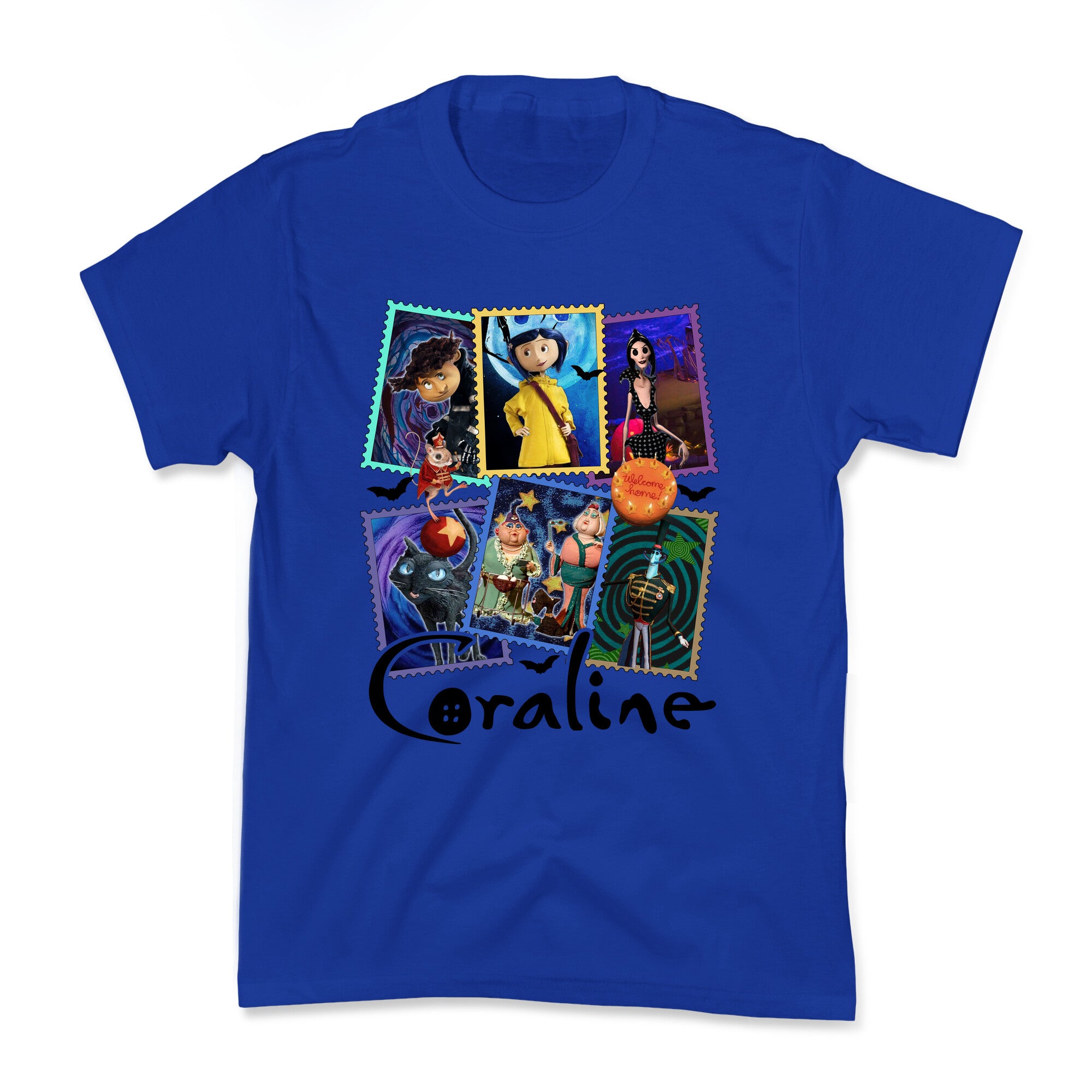 Step into the eerie charm of Coralines world with this shirt featuring the films most iconic characters in stunning detail....