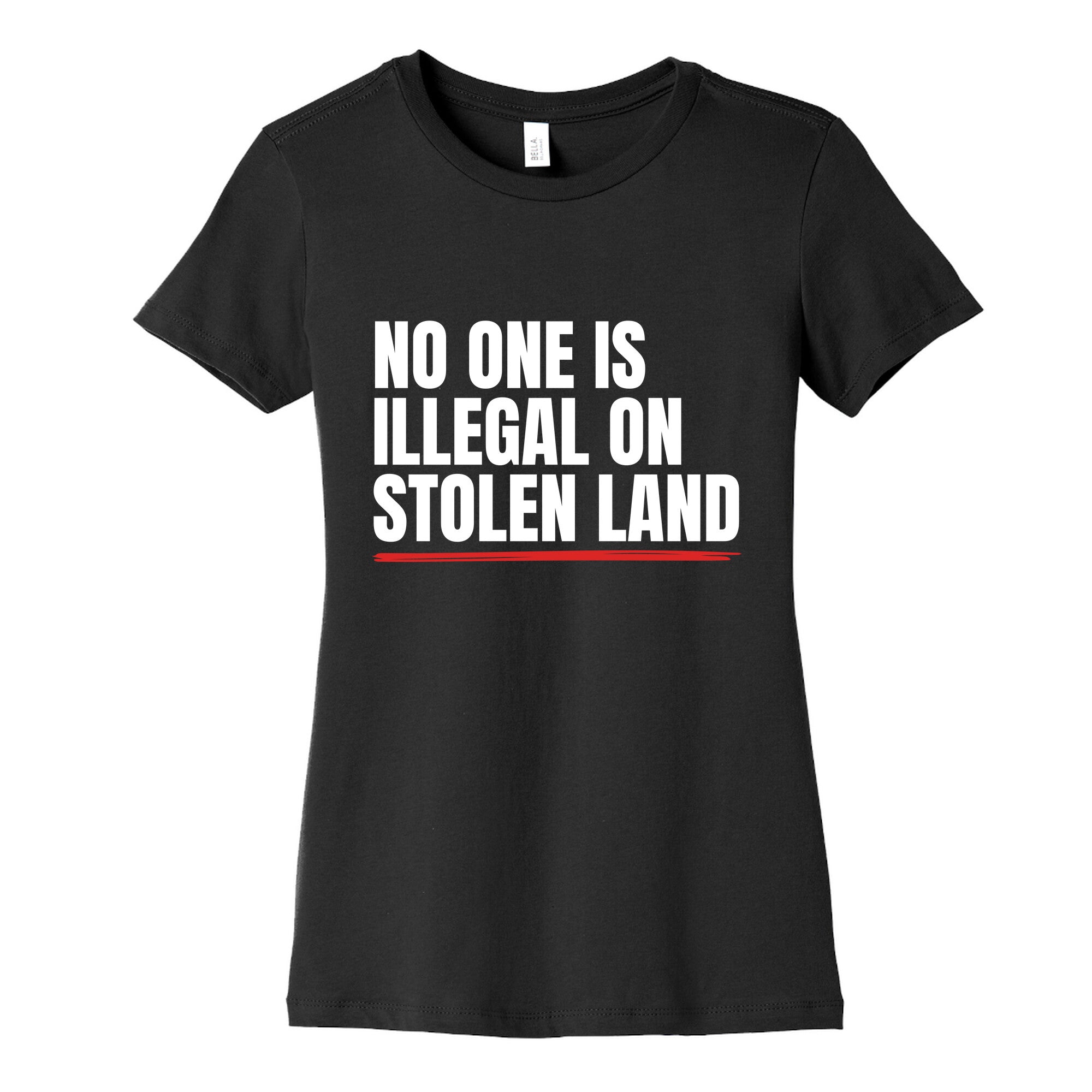 No One Is Illegal On Stolen Land Womens Cotton Tee
