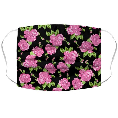 Black and Pink Floral Pattern Face Mask