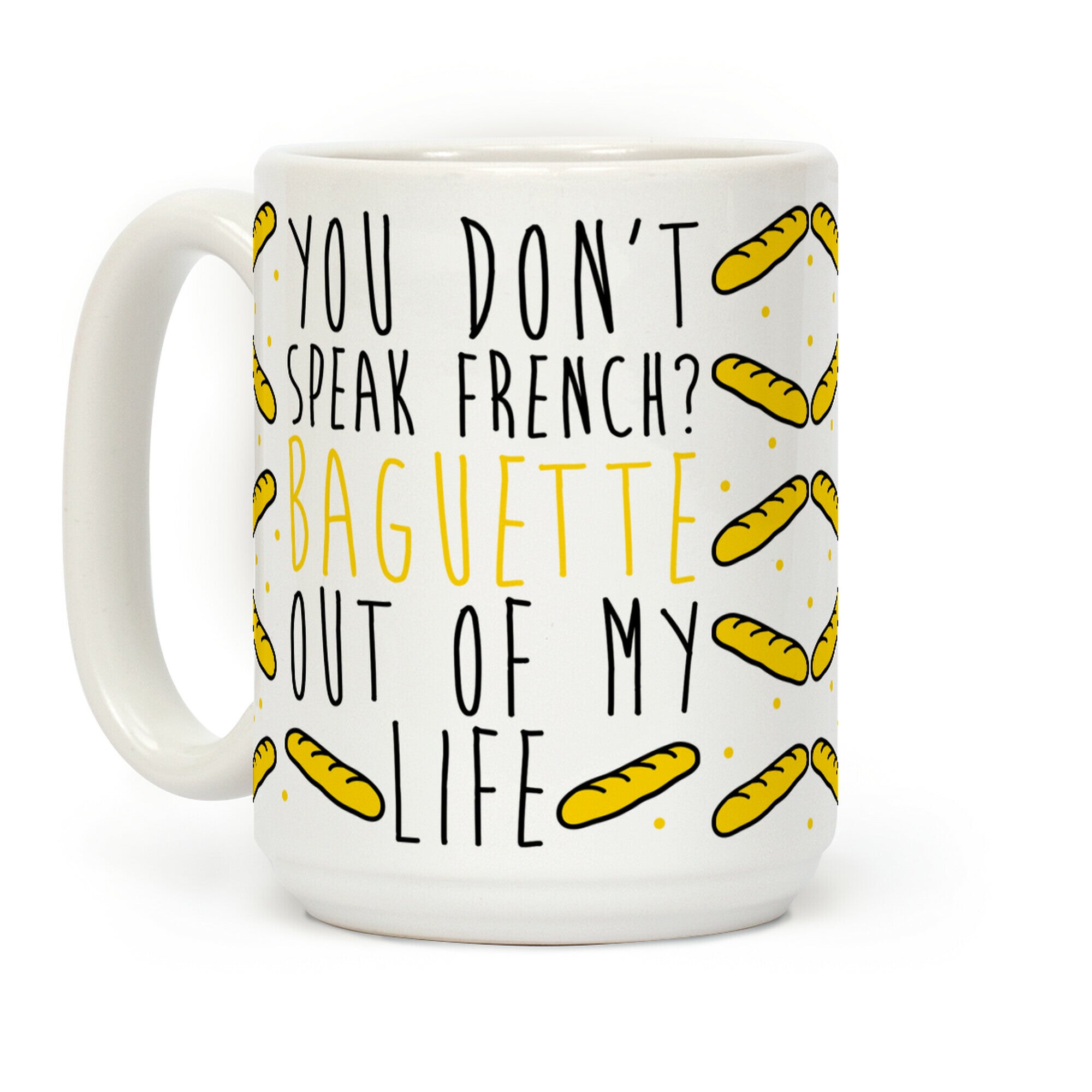 Show off your love of the French language with this funny linguistic pun, baguette lover's, French cuisine humor coffee mug!...