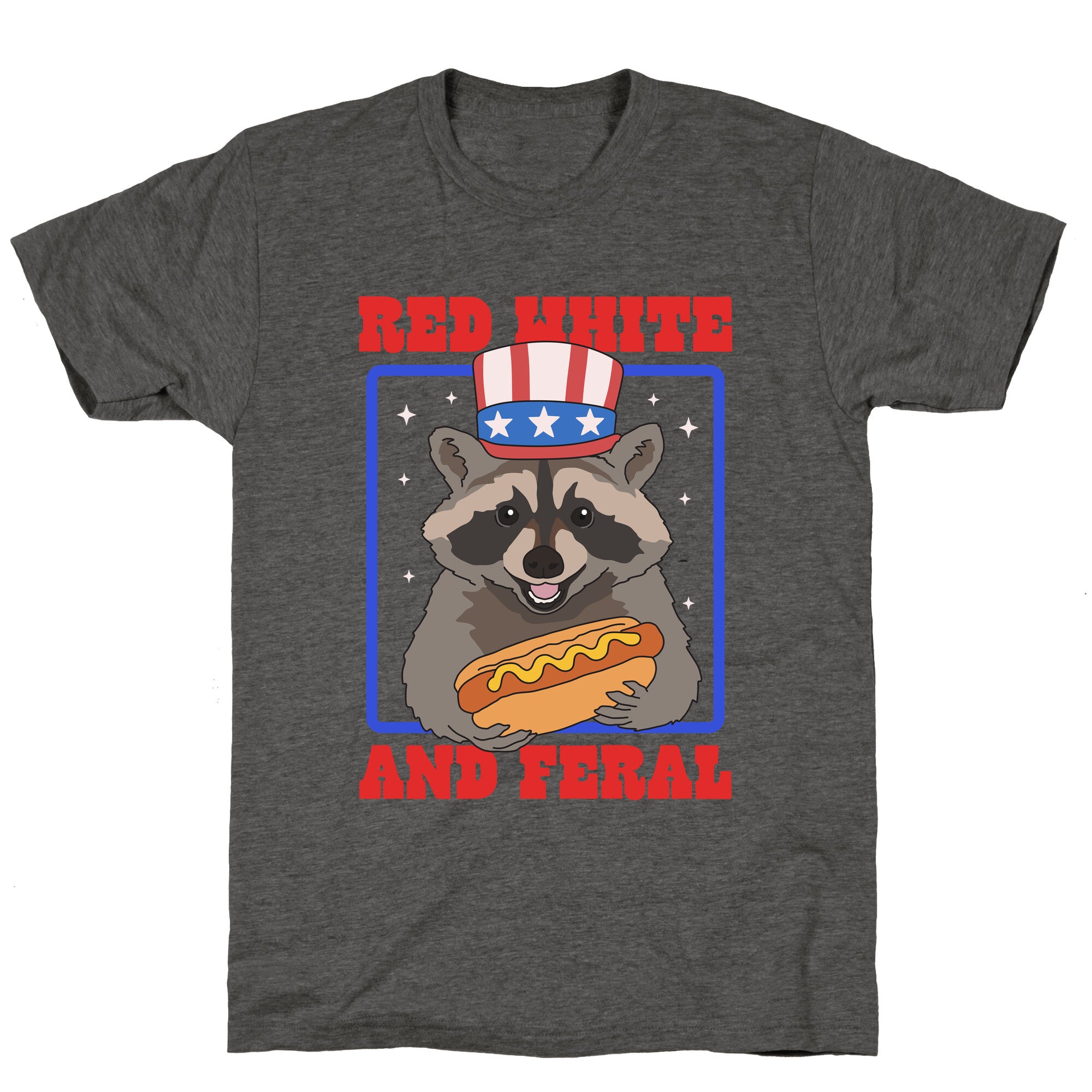 Unleash your wild side with this "Red, White, and Feral" tee featuring a mischievous raccoon ready to party like its...