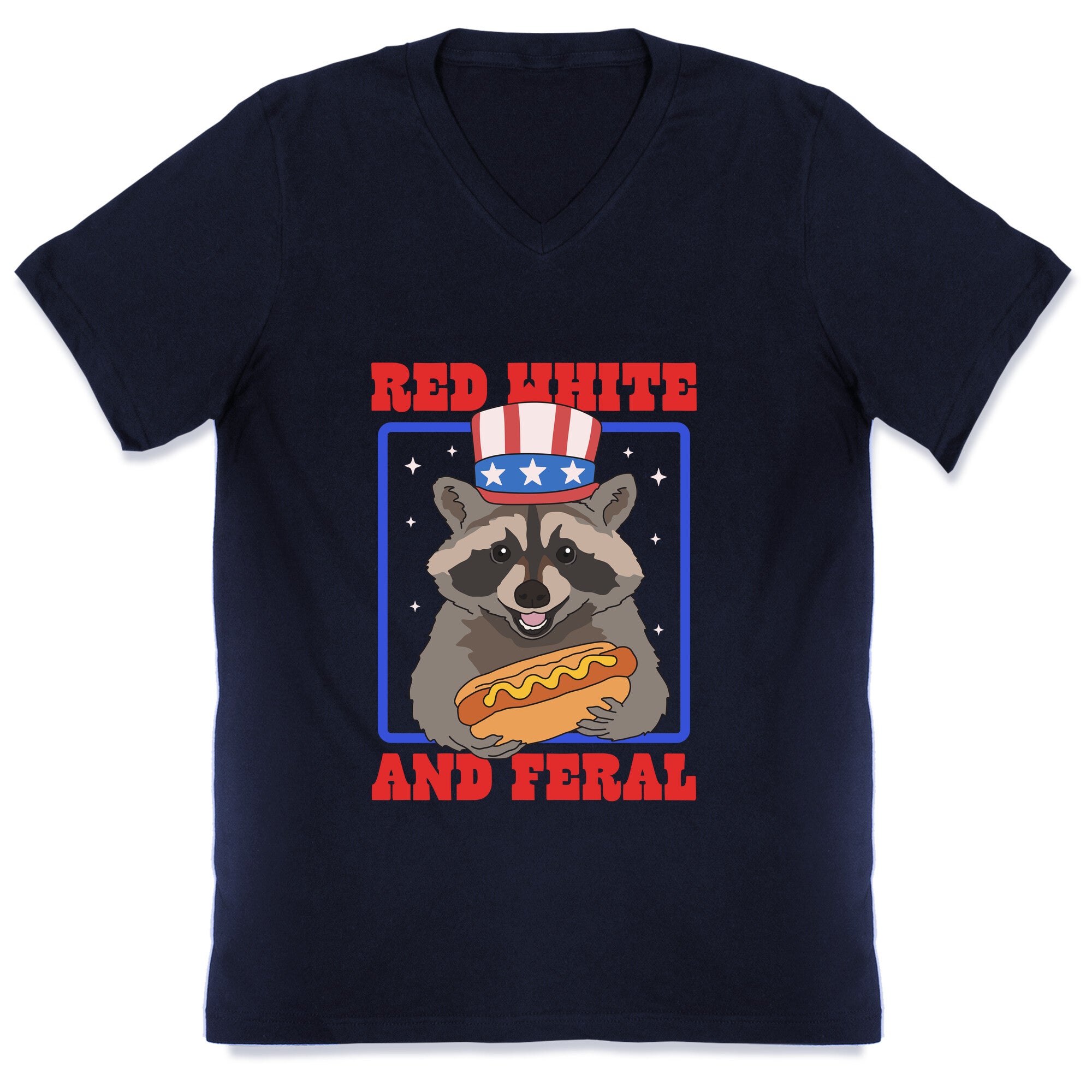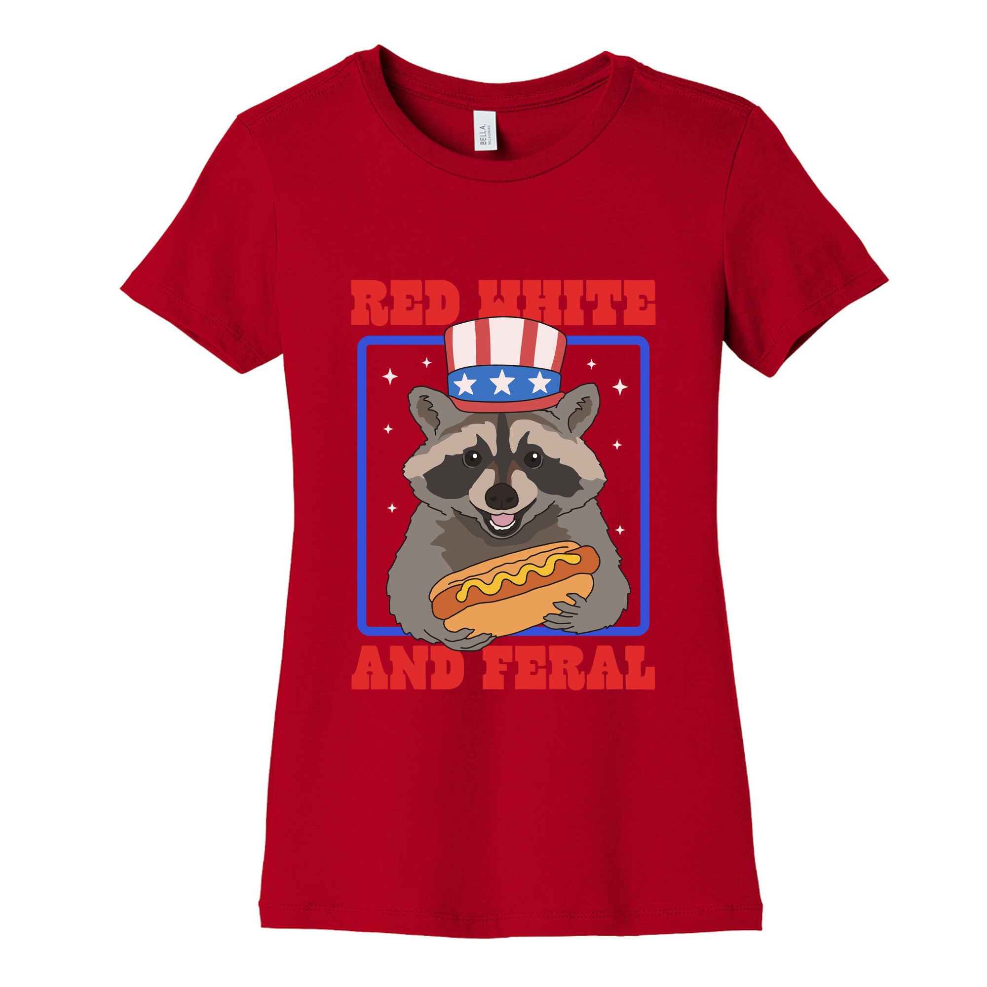 Unleash your wild side with this "Red, White, and Feral" tee featuring a mischievous raccoon ready to party like its...
