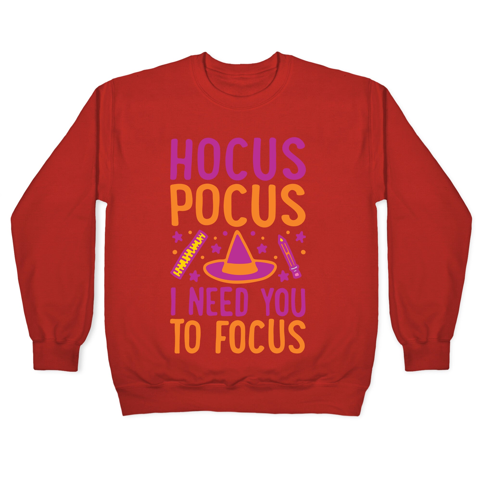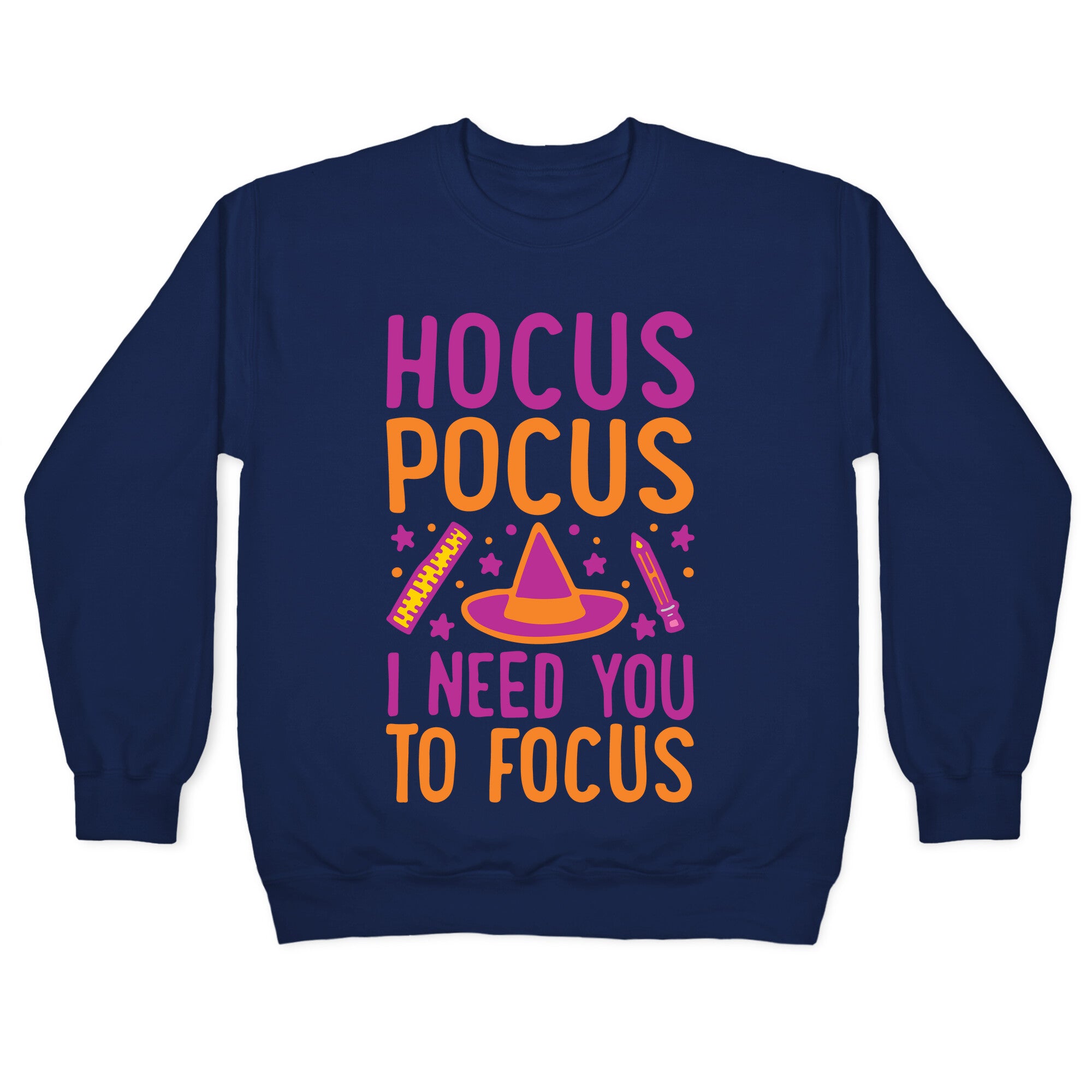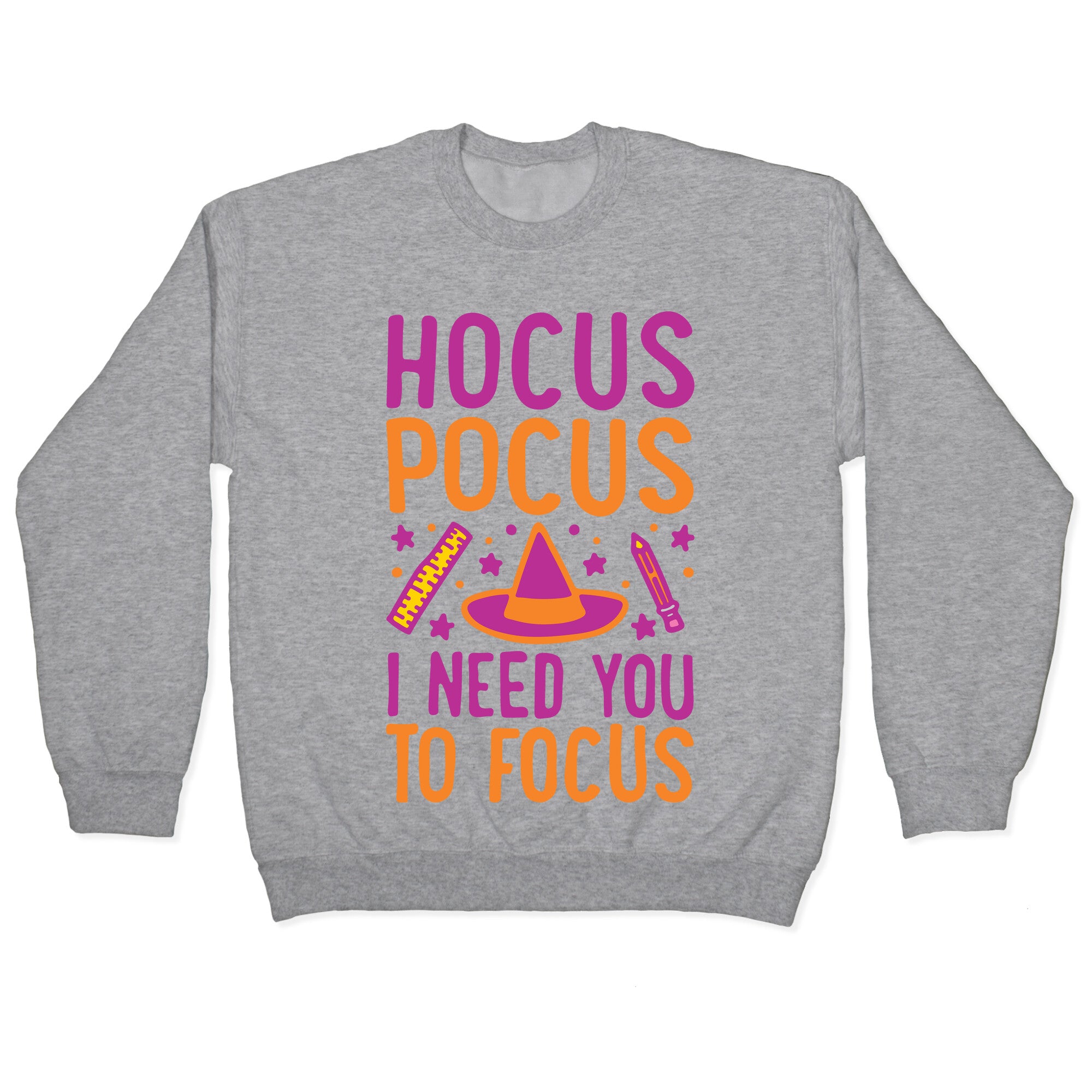 Hocus Pocus I Need You To Focus White Print Crewneck Sweatshirt