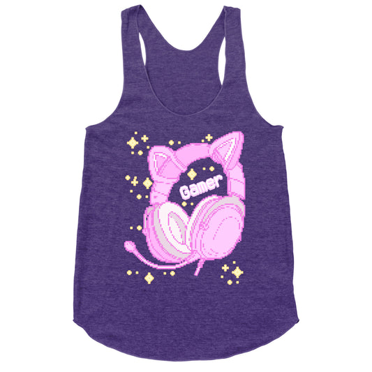 Pixel Gamer Cat Ear Headphones Racerback Tank