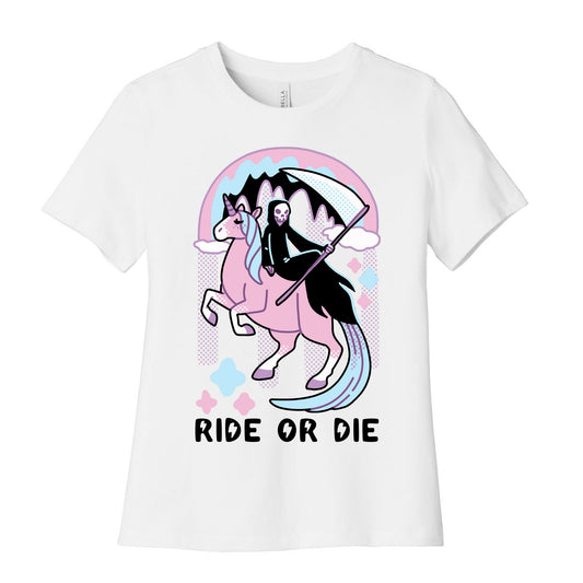 Ride or Die - Grim Reaper and Unicorn Women's Cotton Tee
