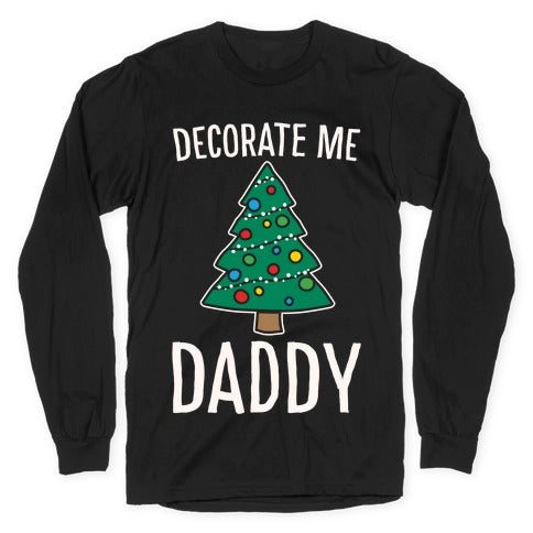 Decorate Me Daddy Christmas Tree Parody White Print Longsleeve Tee