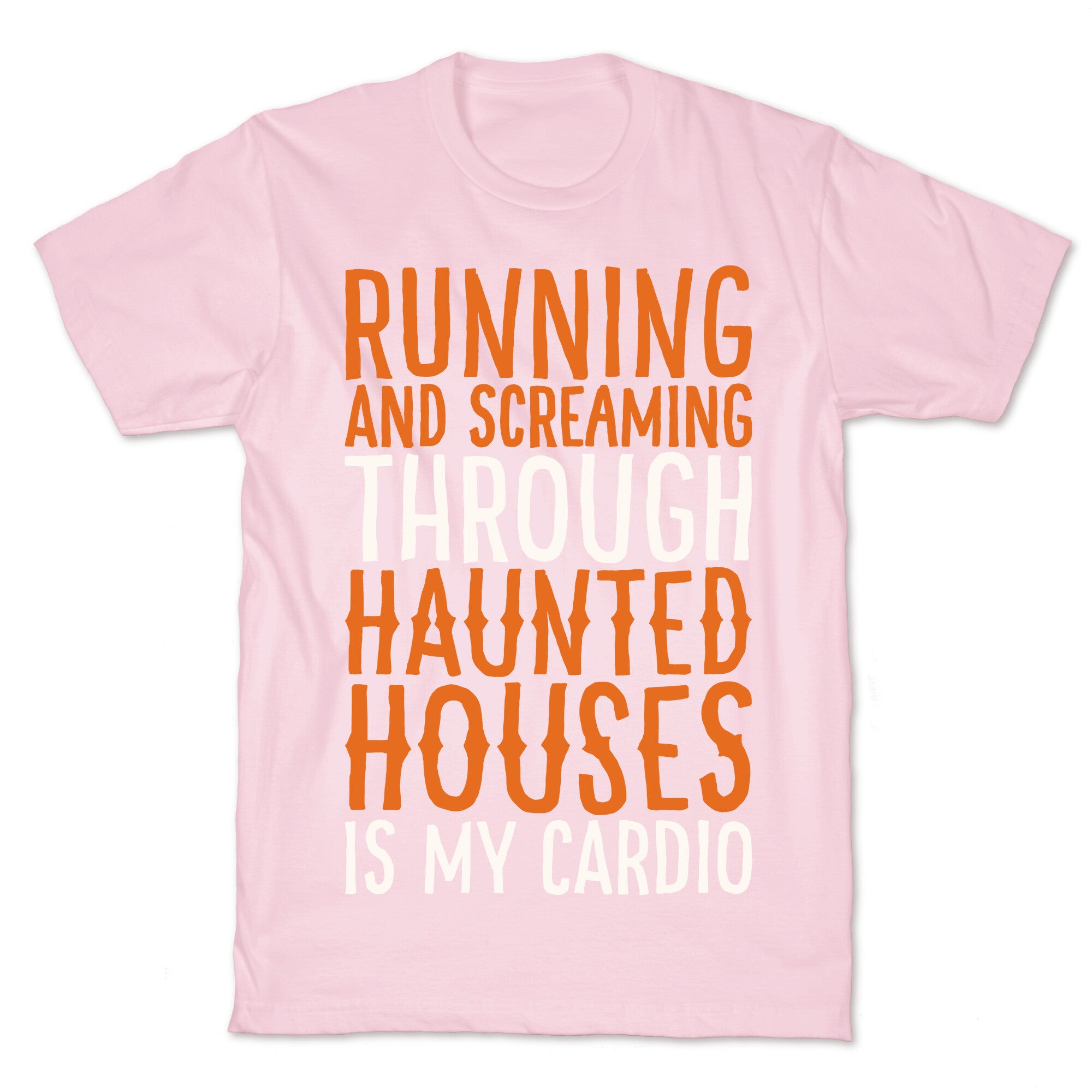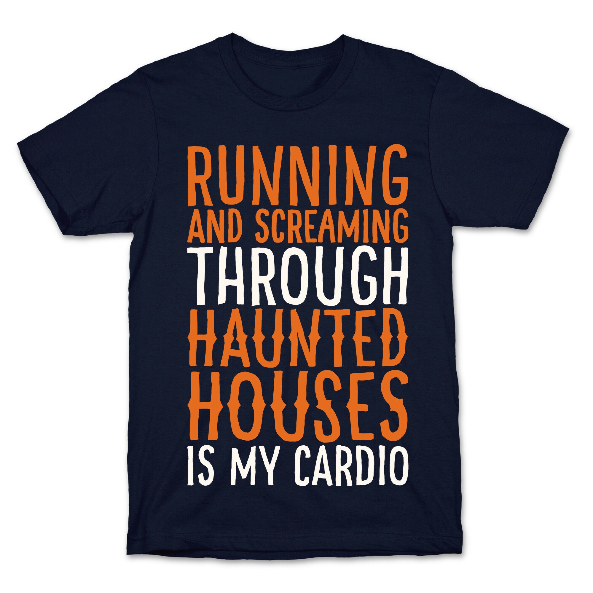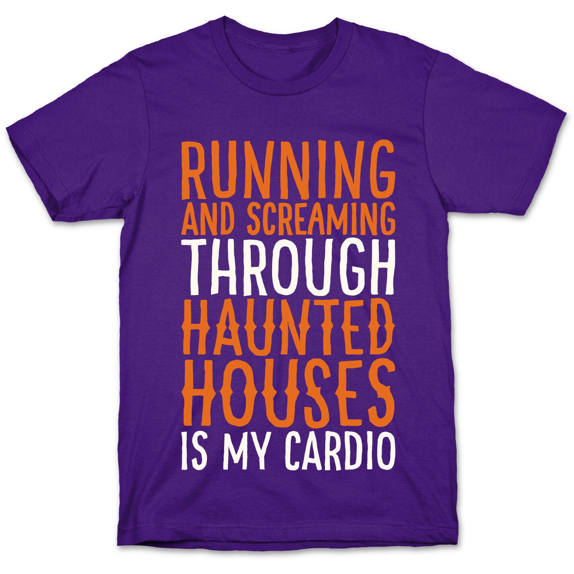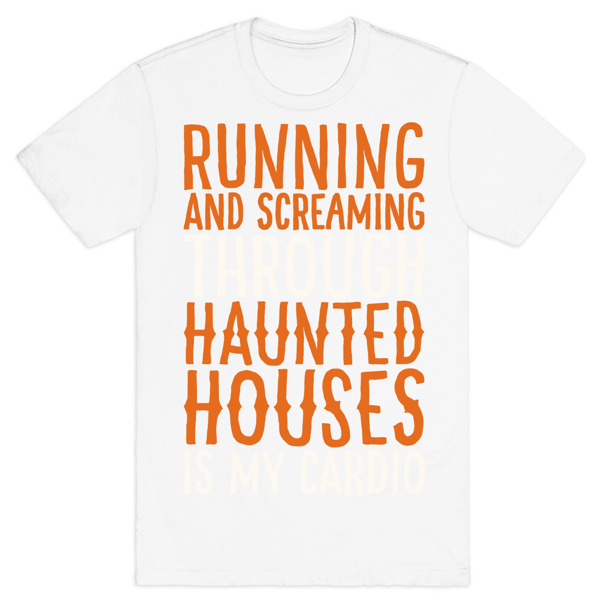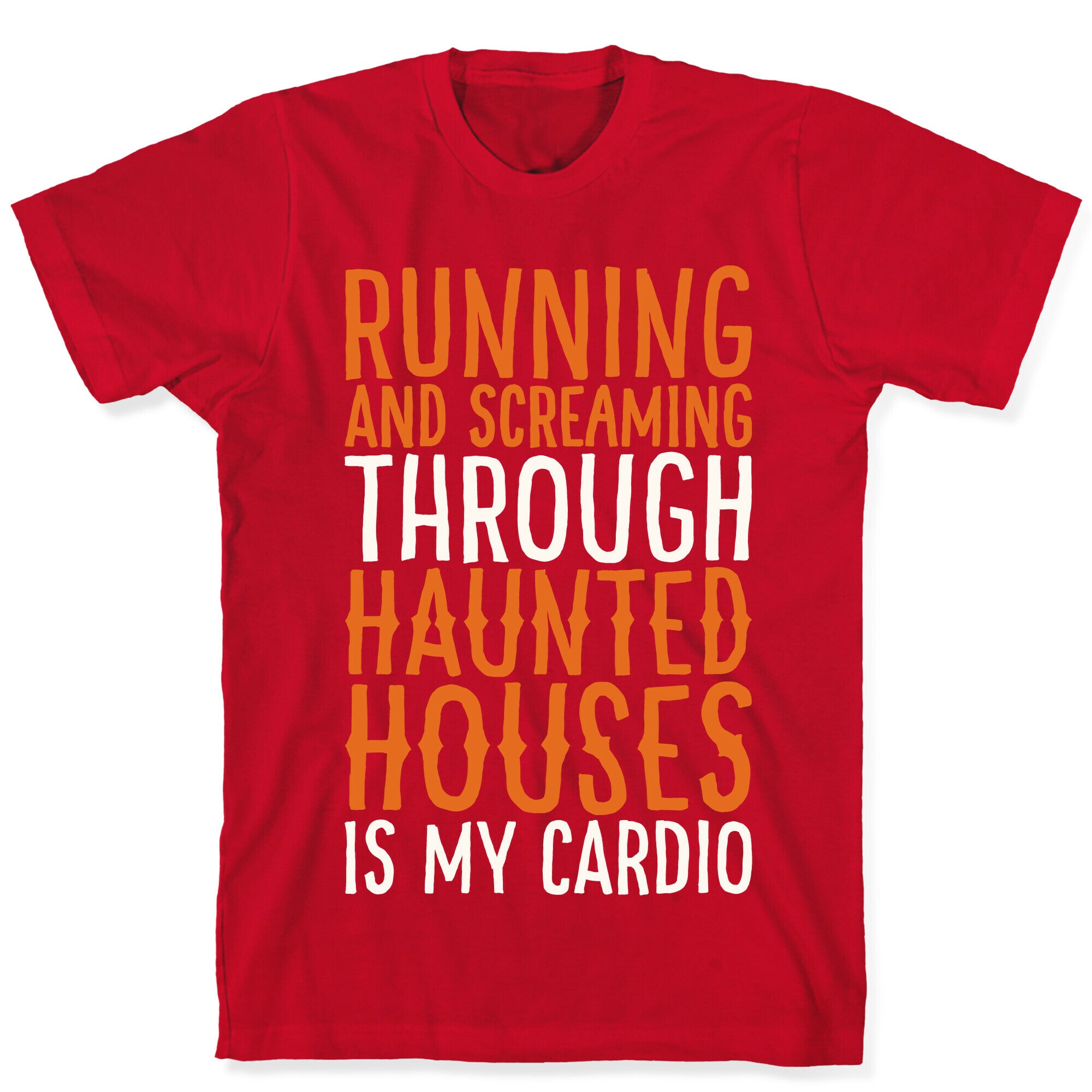 • Running And Screaming Through Haunted Houses Is My Cardio White Print T-Shirt