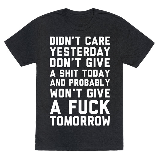 Didn't Care Yesterday Don't Give A Shit Today Unisex Triblend Tee