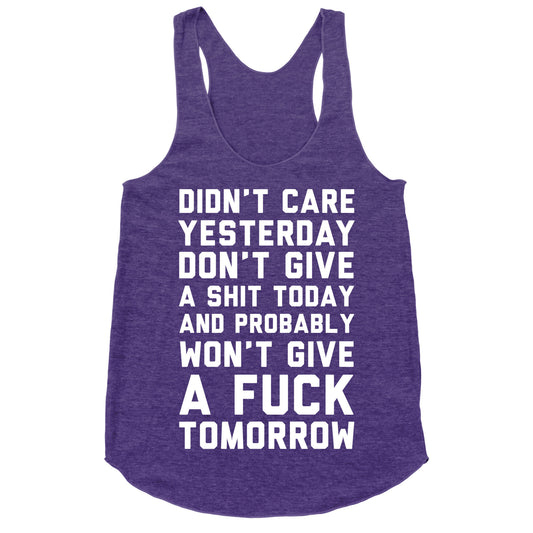 Didn't Care Yesterday Don't Give A Shit Today Racerback Tank
