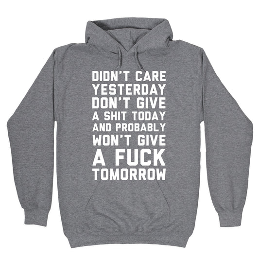 Didn't Care Yesterday Don't Give A Shit Today Hoodie
