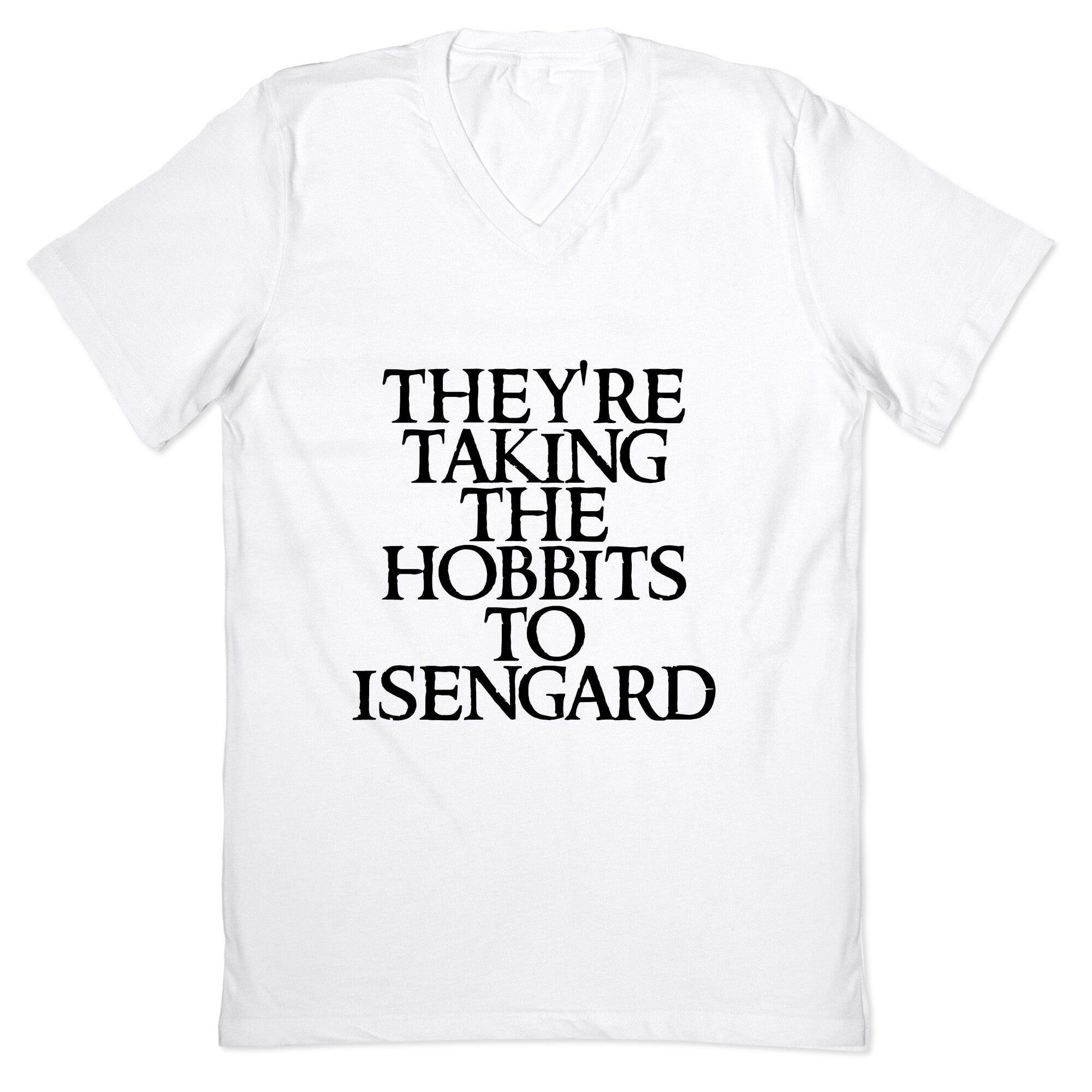 They're taking the hobbits to Isengard. TO ISENGARD! Our fitted Men's V-Neck tees are made with a soft jersey fabric....