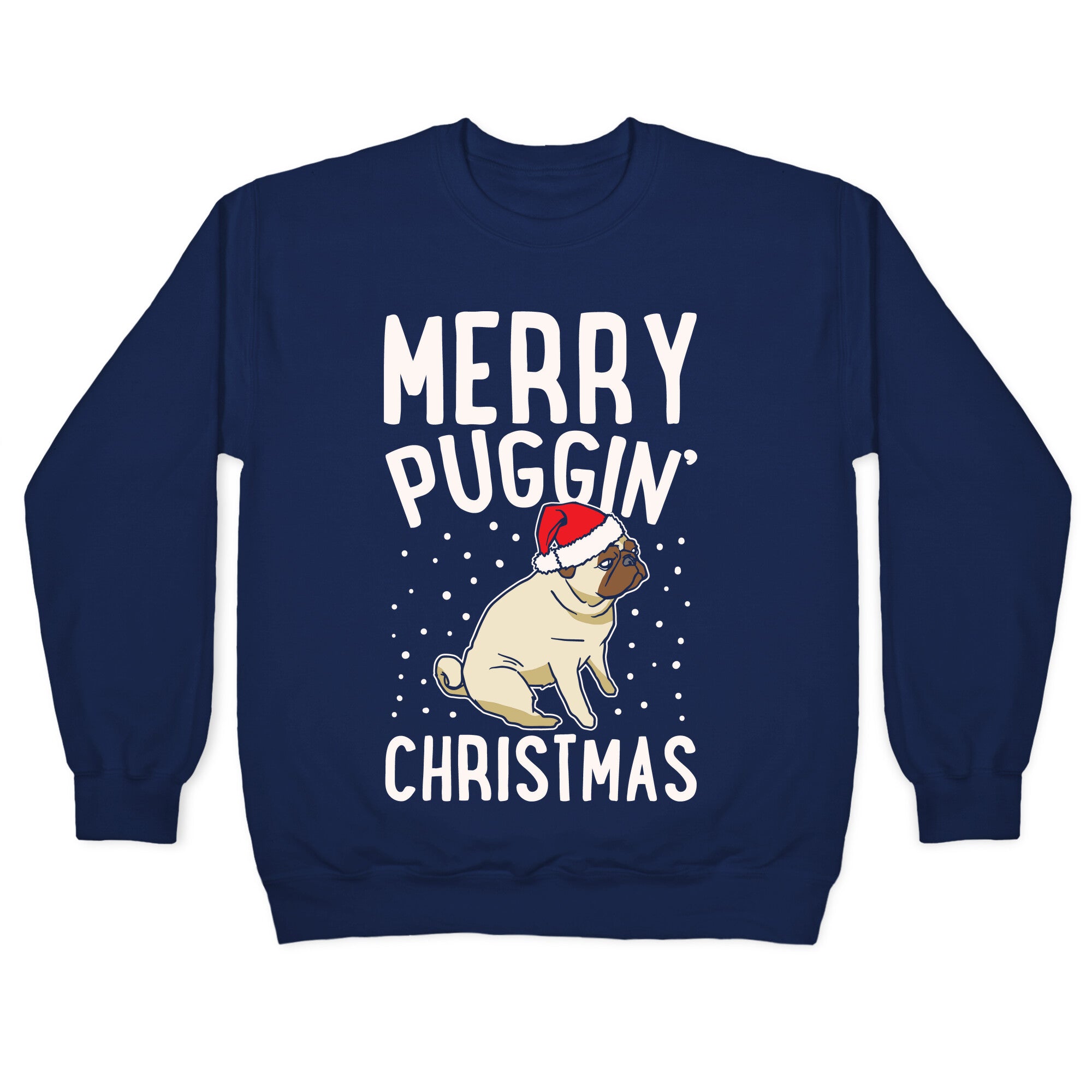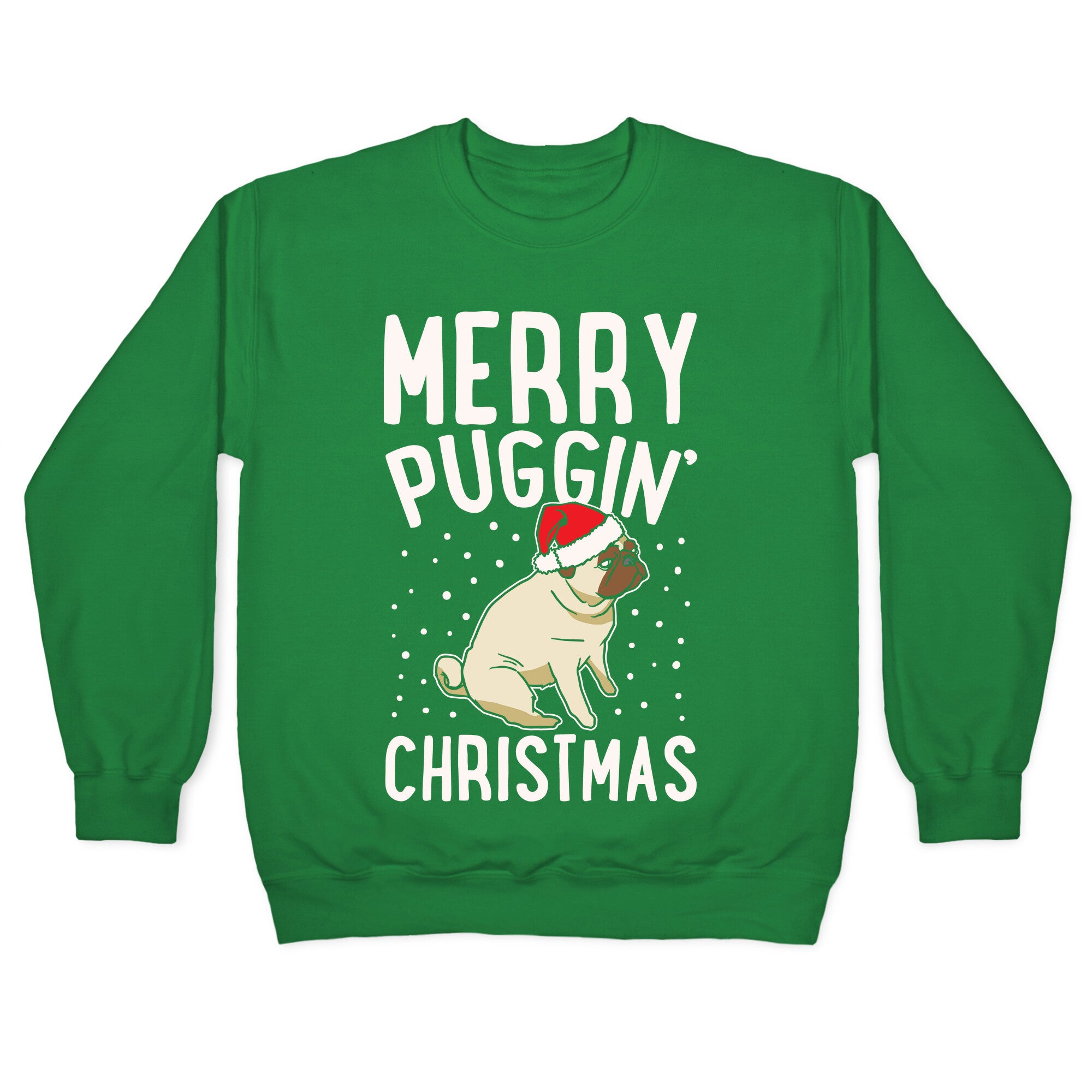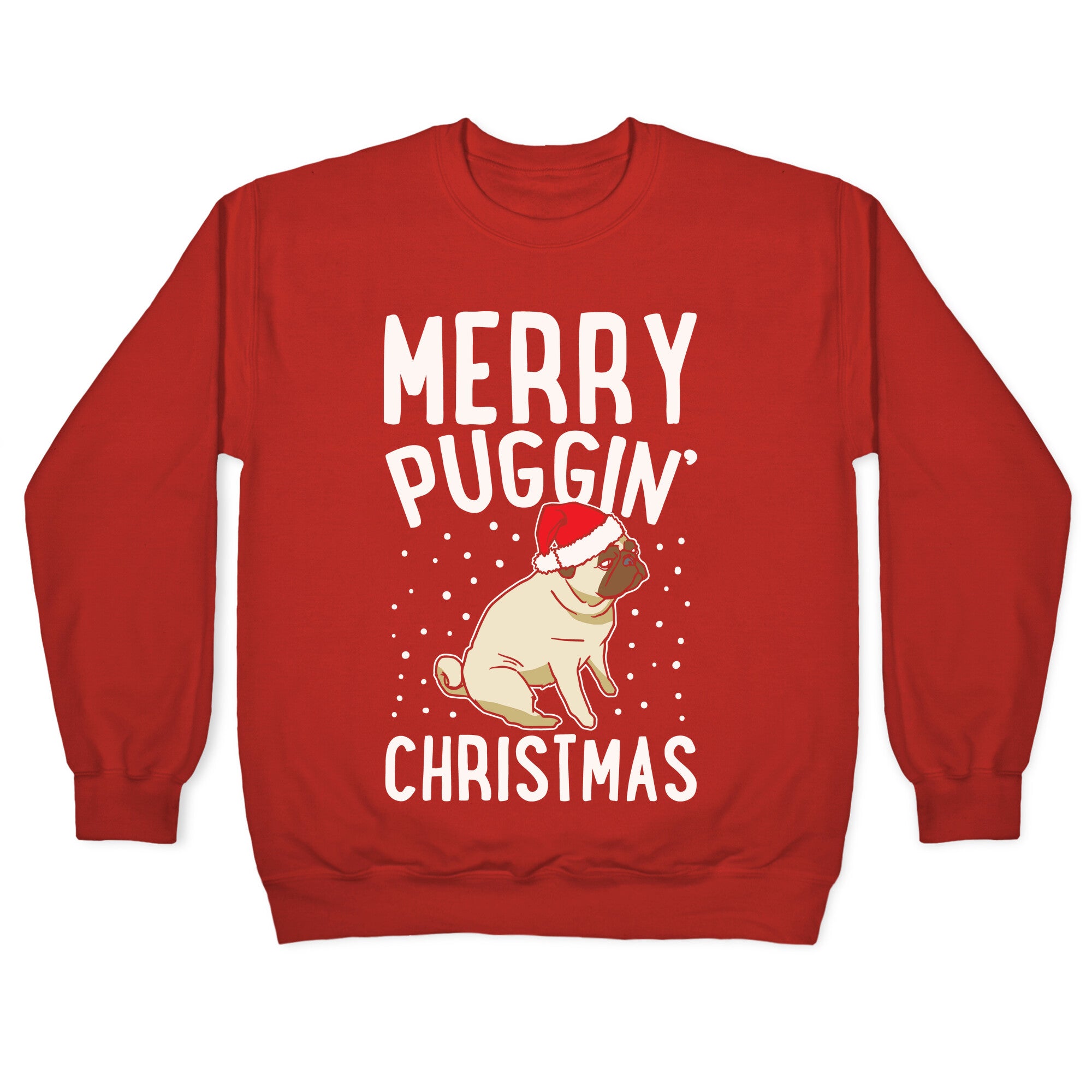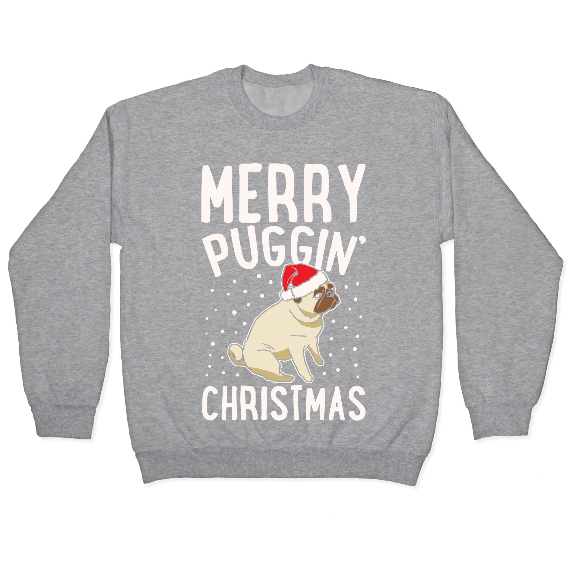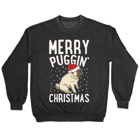 Merry Puggin' Christmas Pug White Print Crewneck Sweatshirt