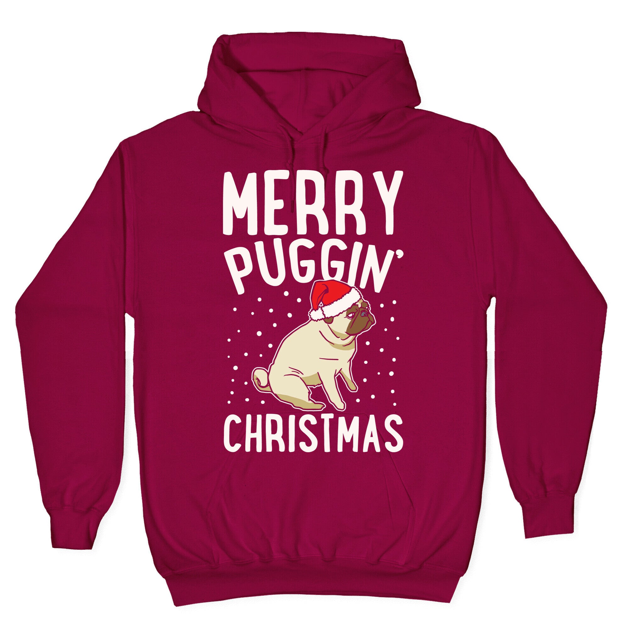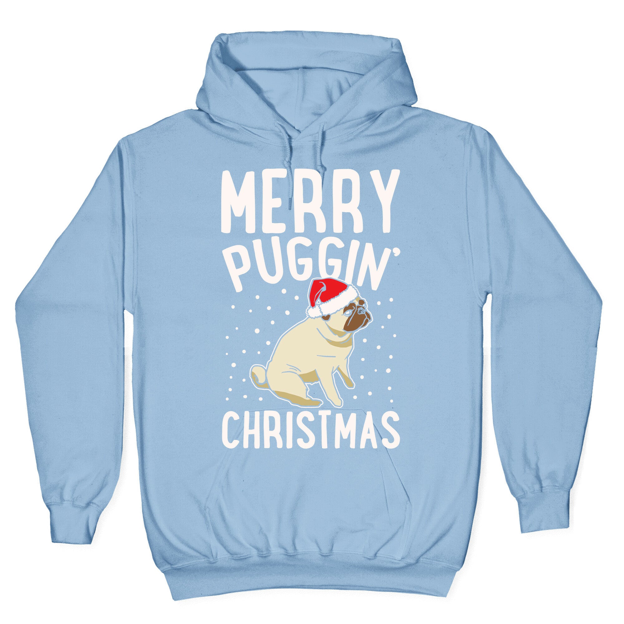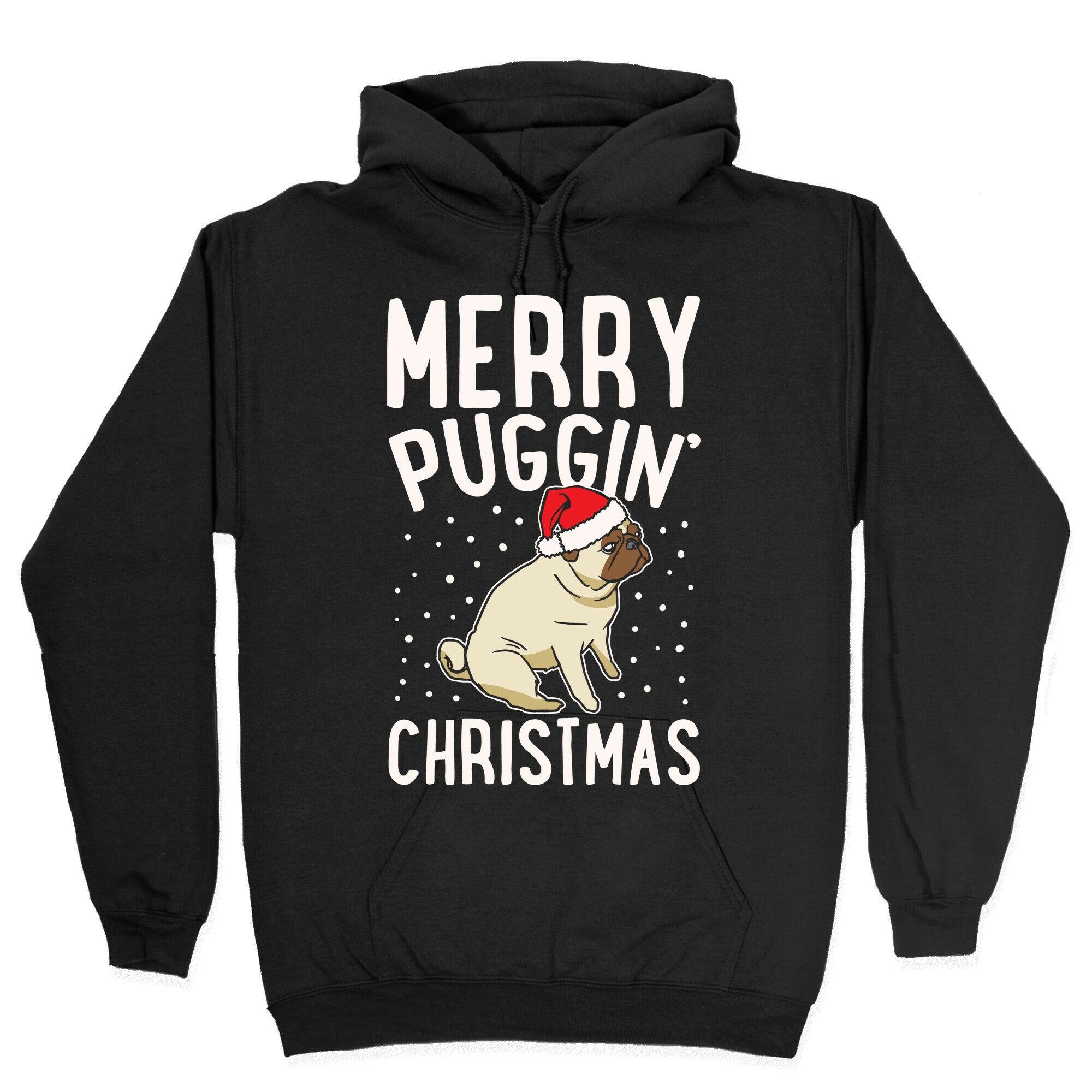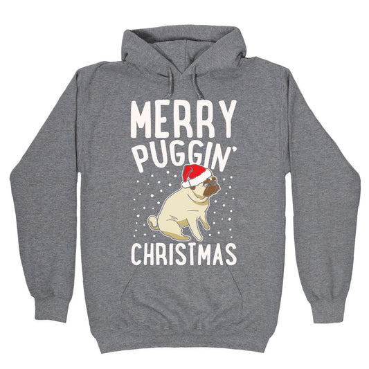 Merry Puggin' Christmas Pug White Print Hoodie