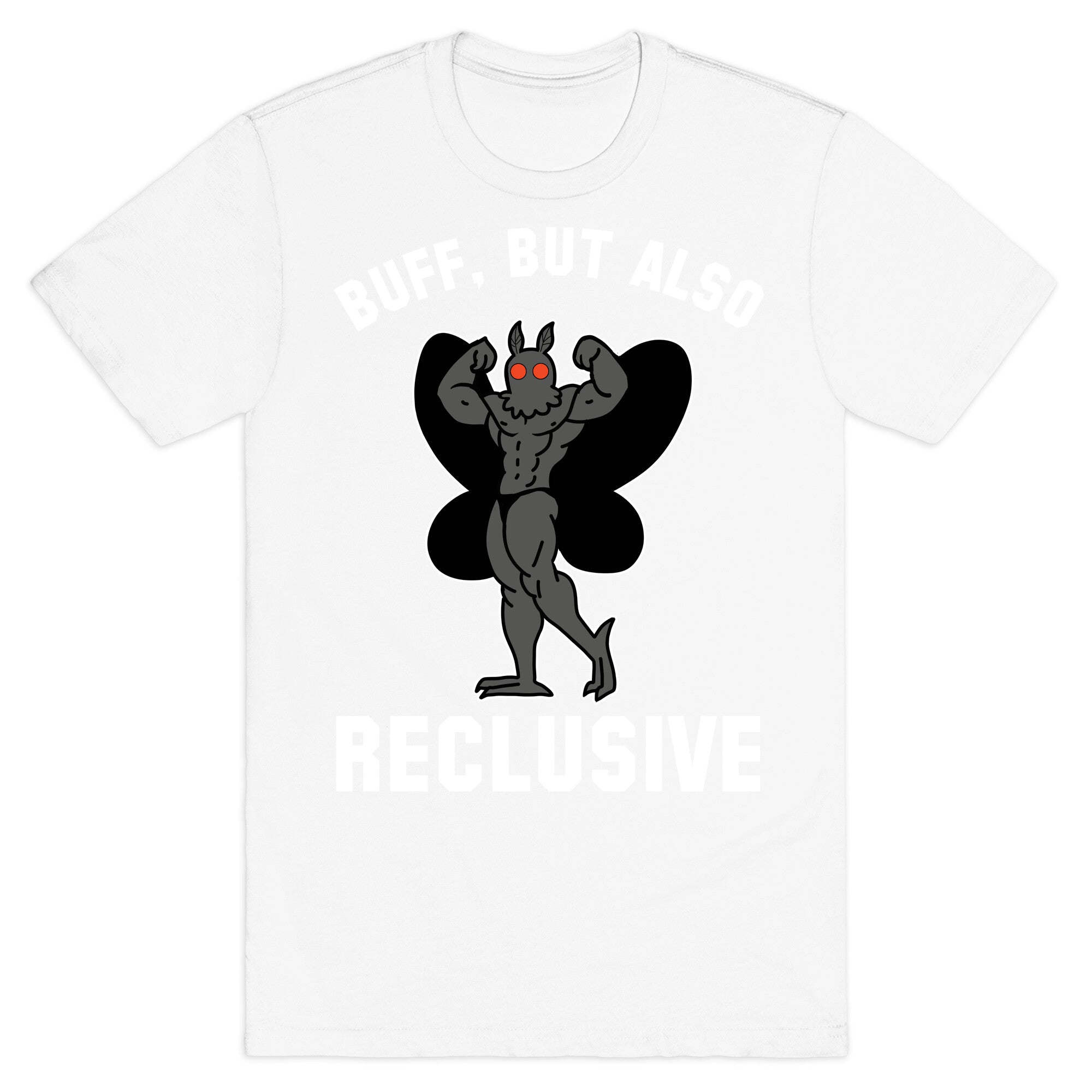 Introducing our "Buff, But Also Reclusive (Mothman)" t-shirt, designed for those who embrace their inner enigma while still staying true...