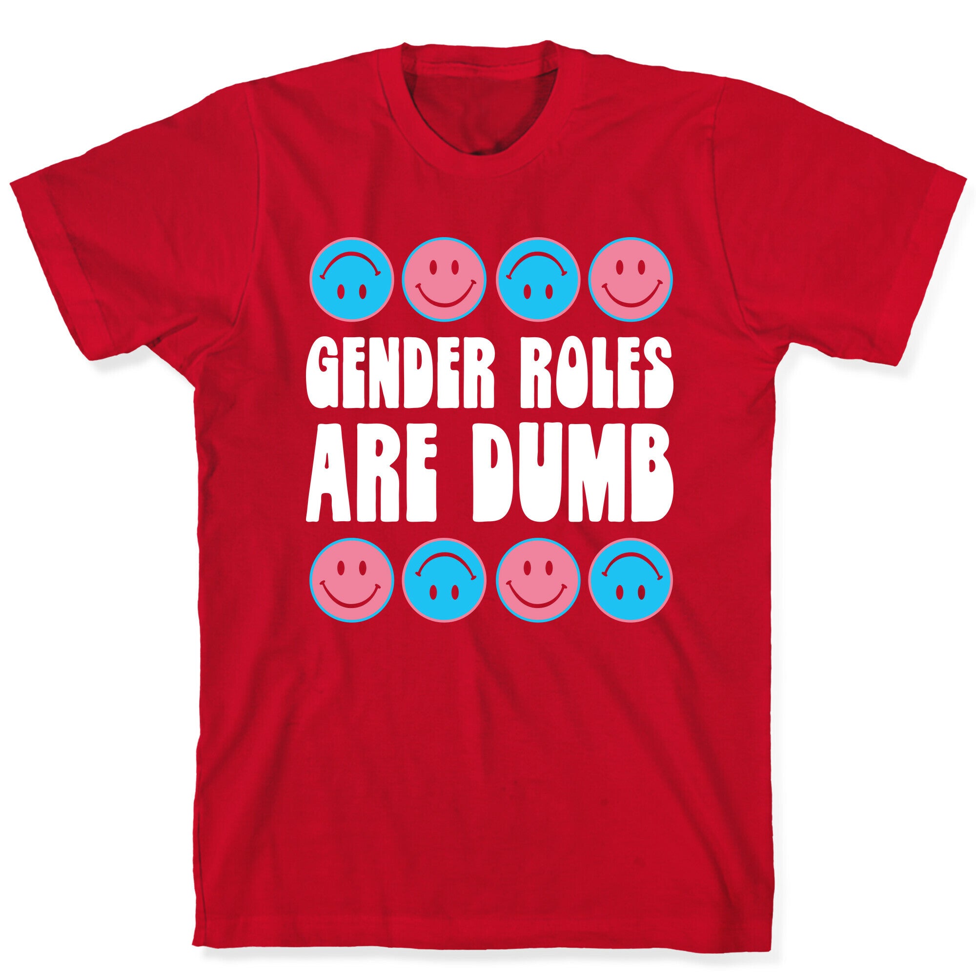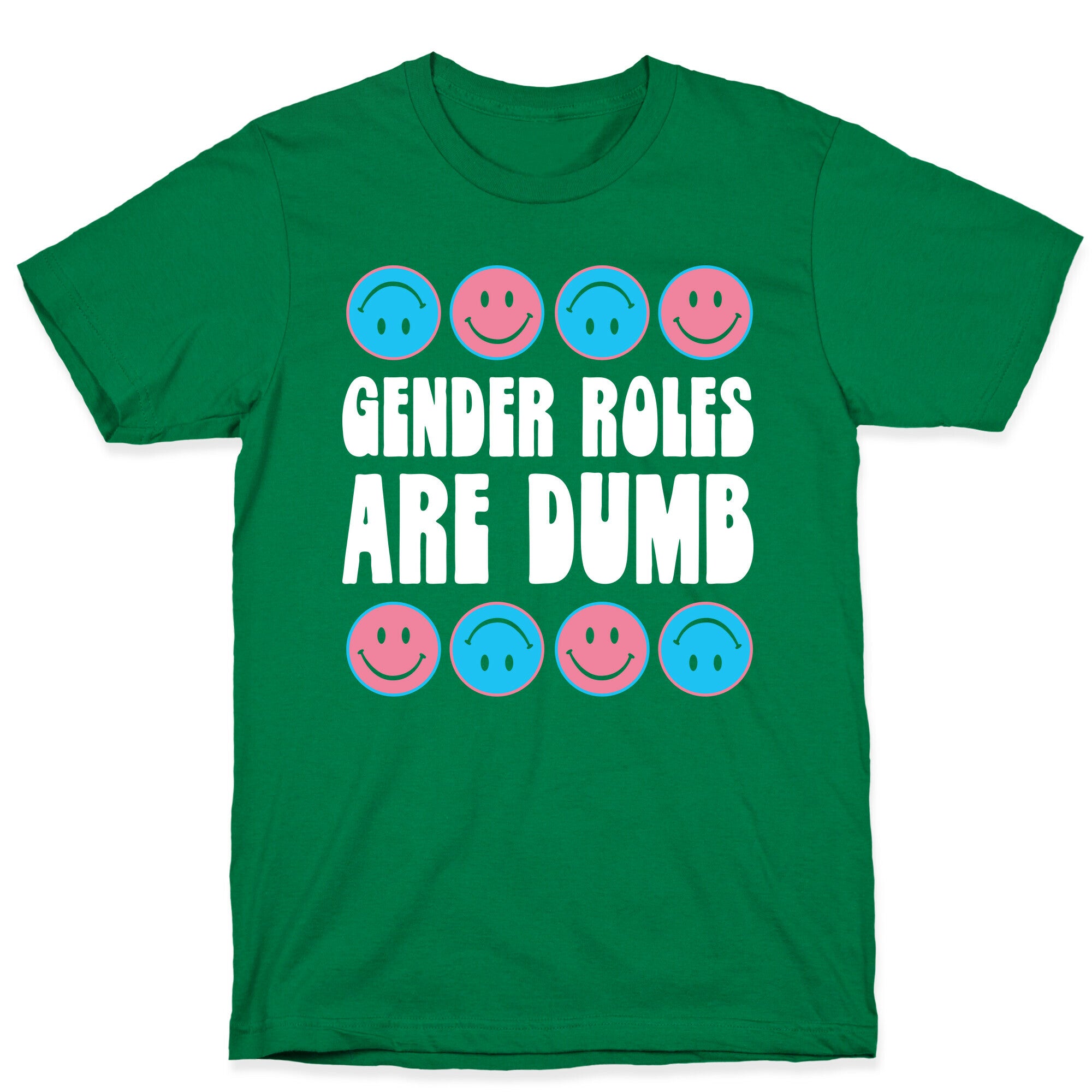 Gender roles are dumb! Get straight to the point with this statement, gender equality design! Featuring varying smiley faces in...