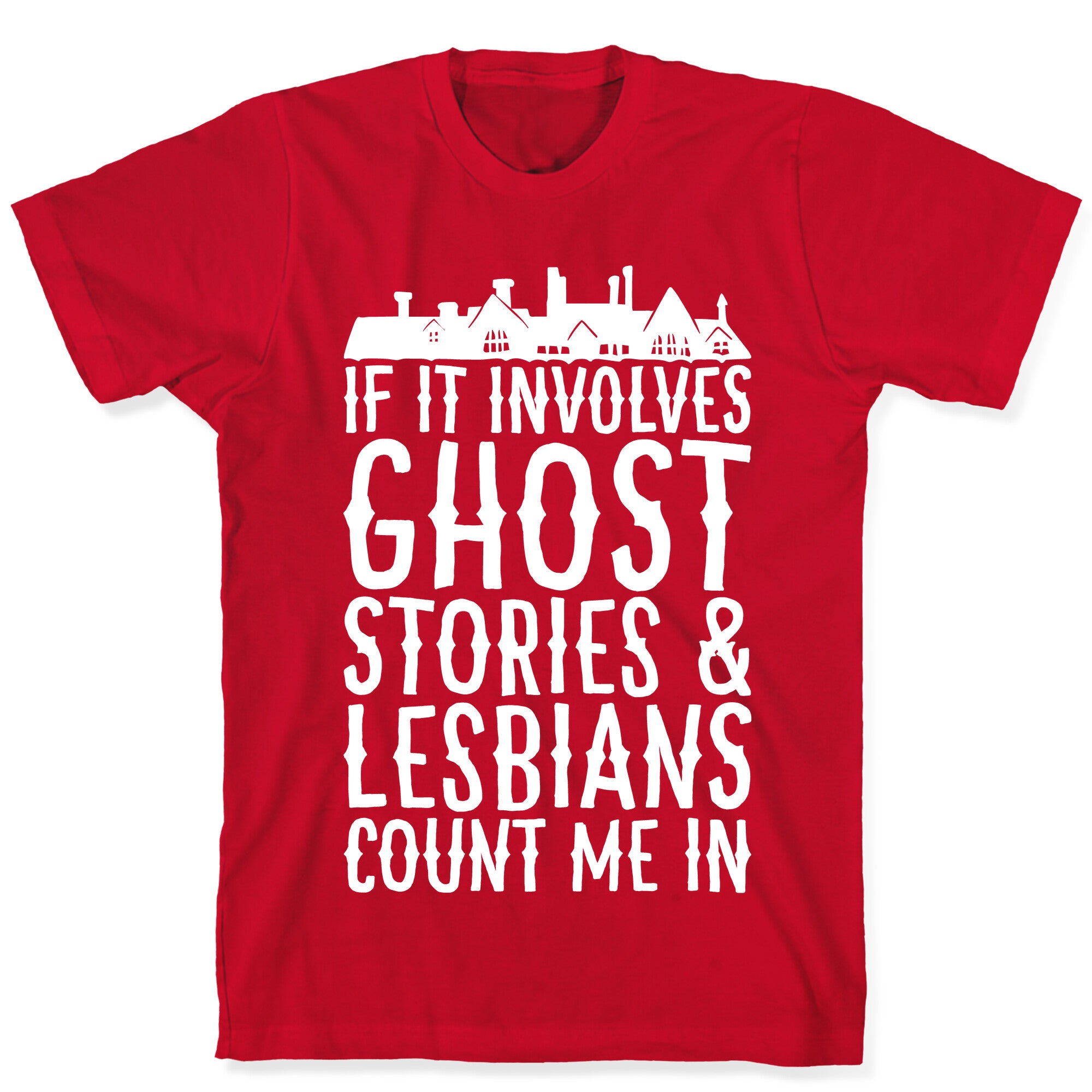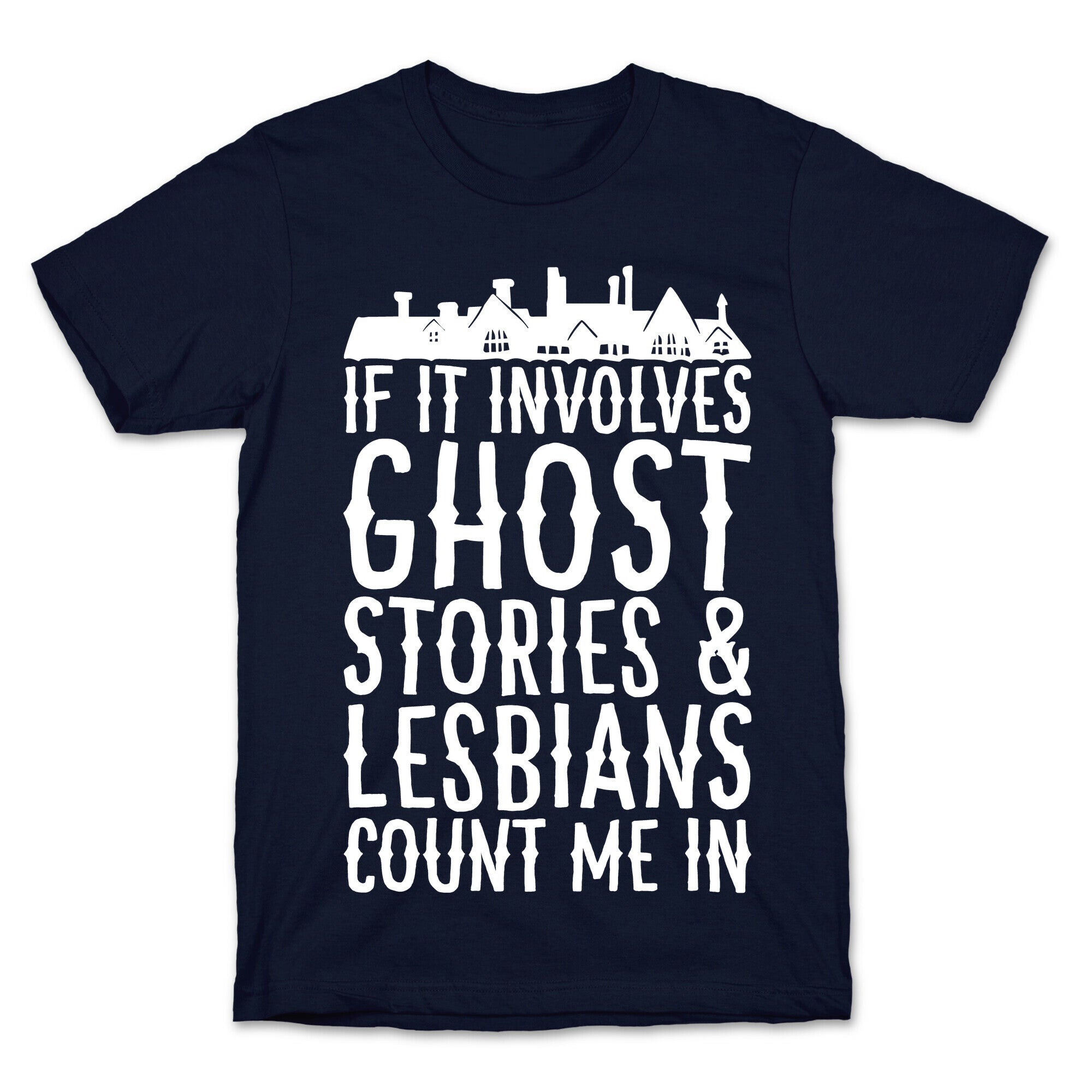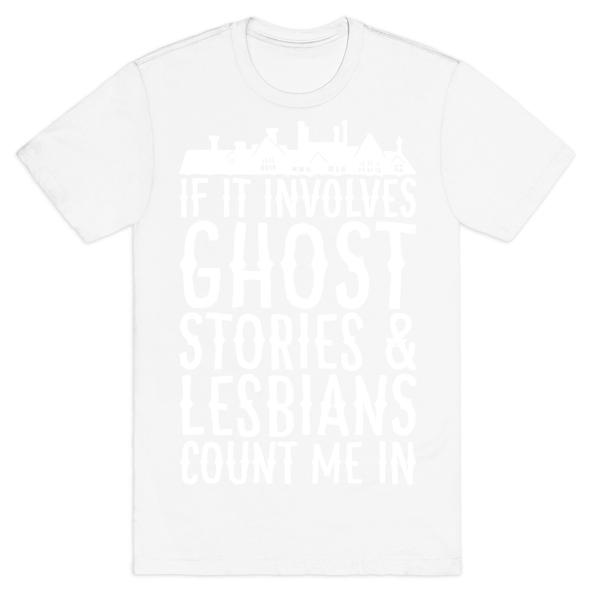If It Involves Ghost Stories and Lesbians Count Me In Parody White Print T-Shirt