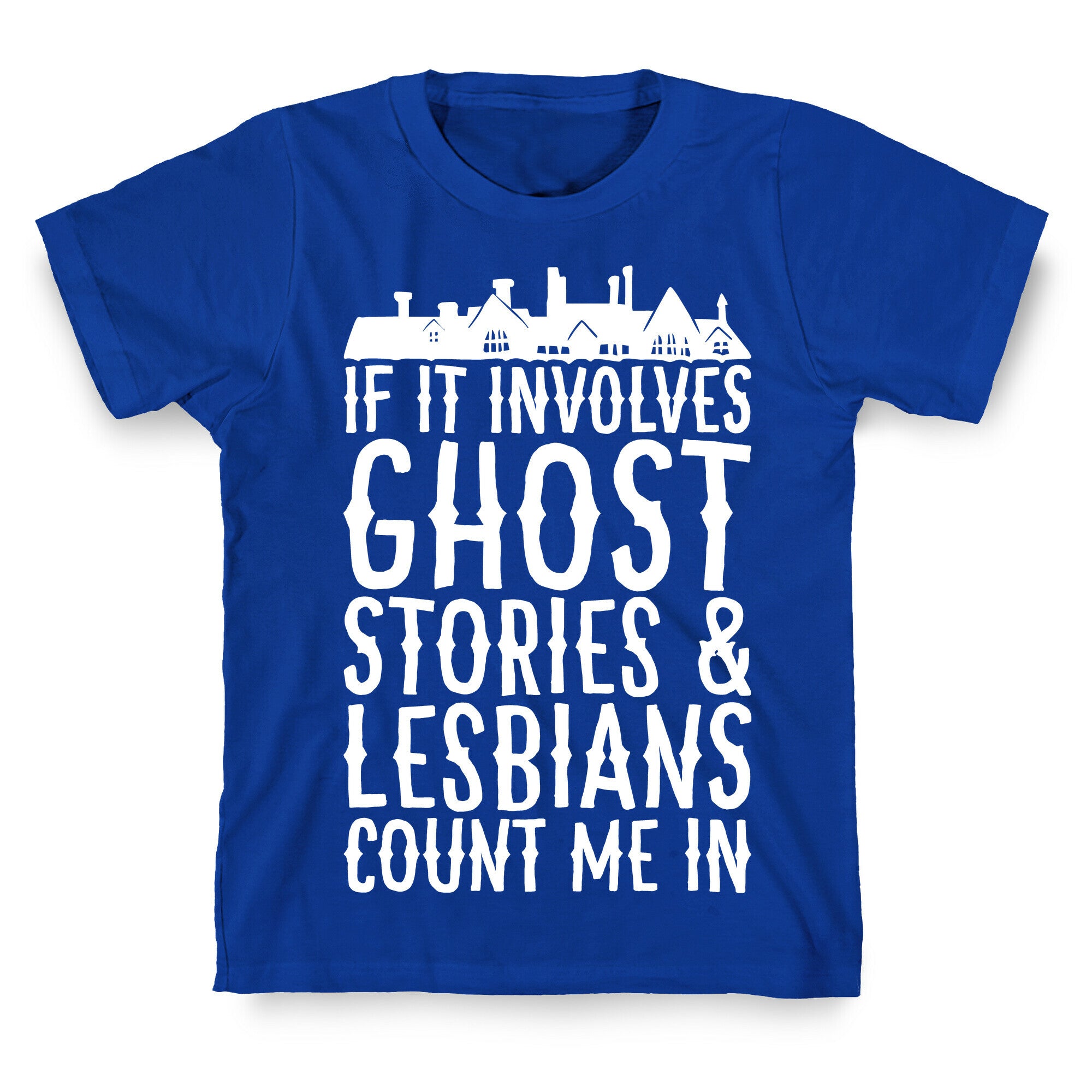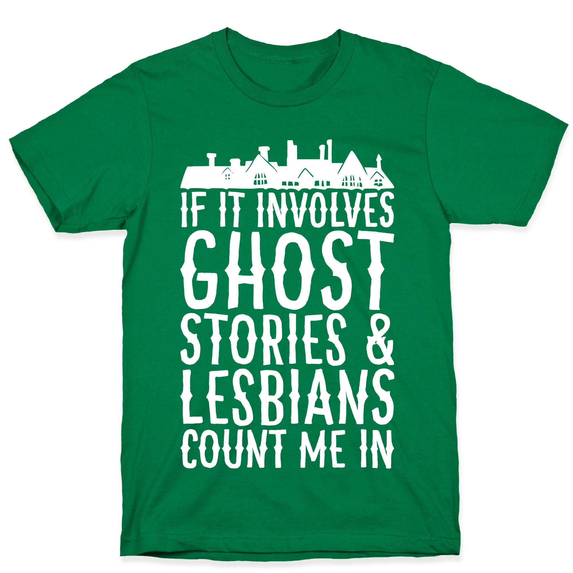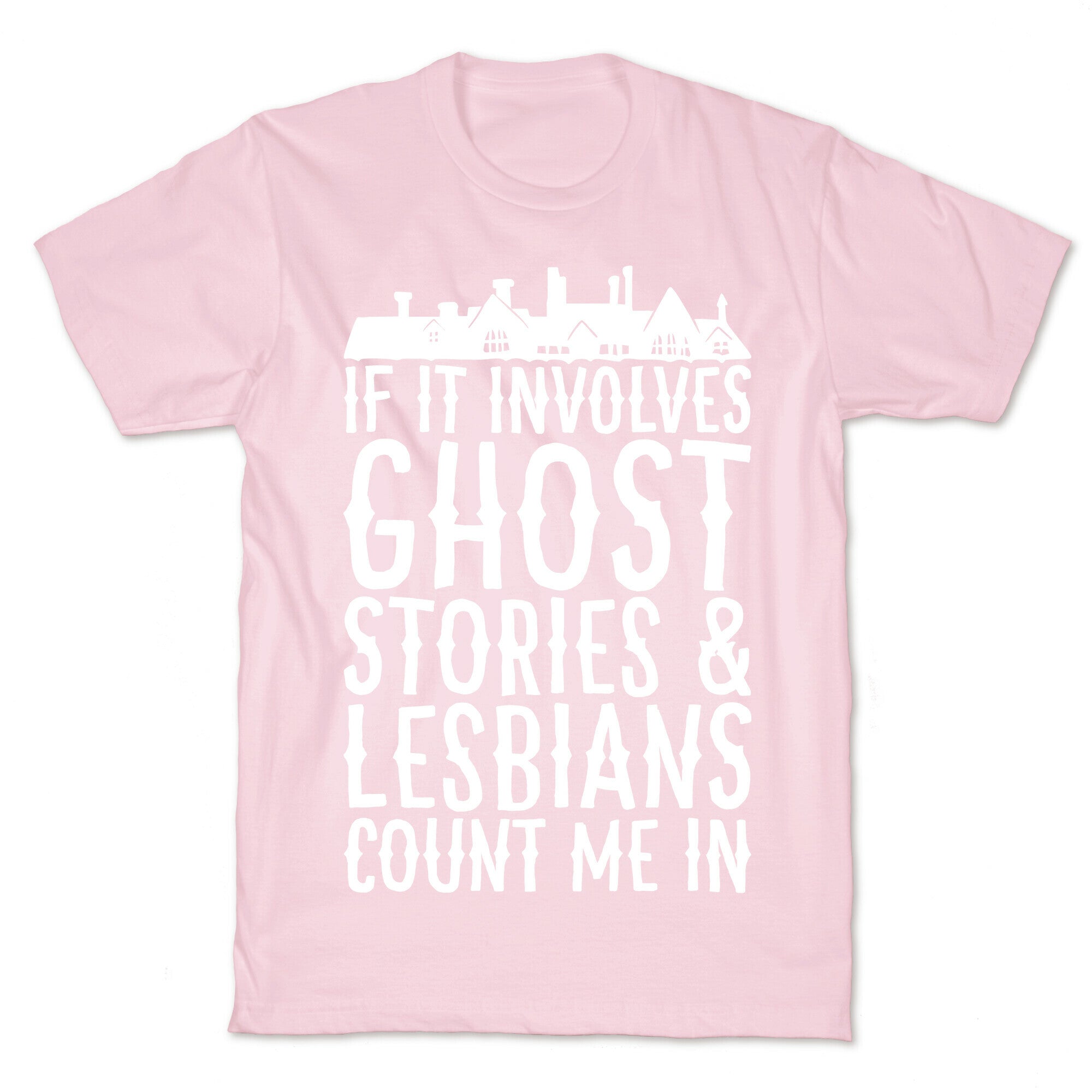 If It Involves Ghost Stories and Lesbians Count Me In Parody White Print T-Shirt