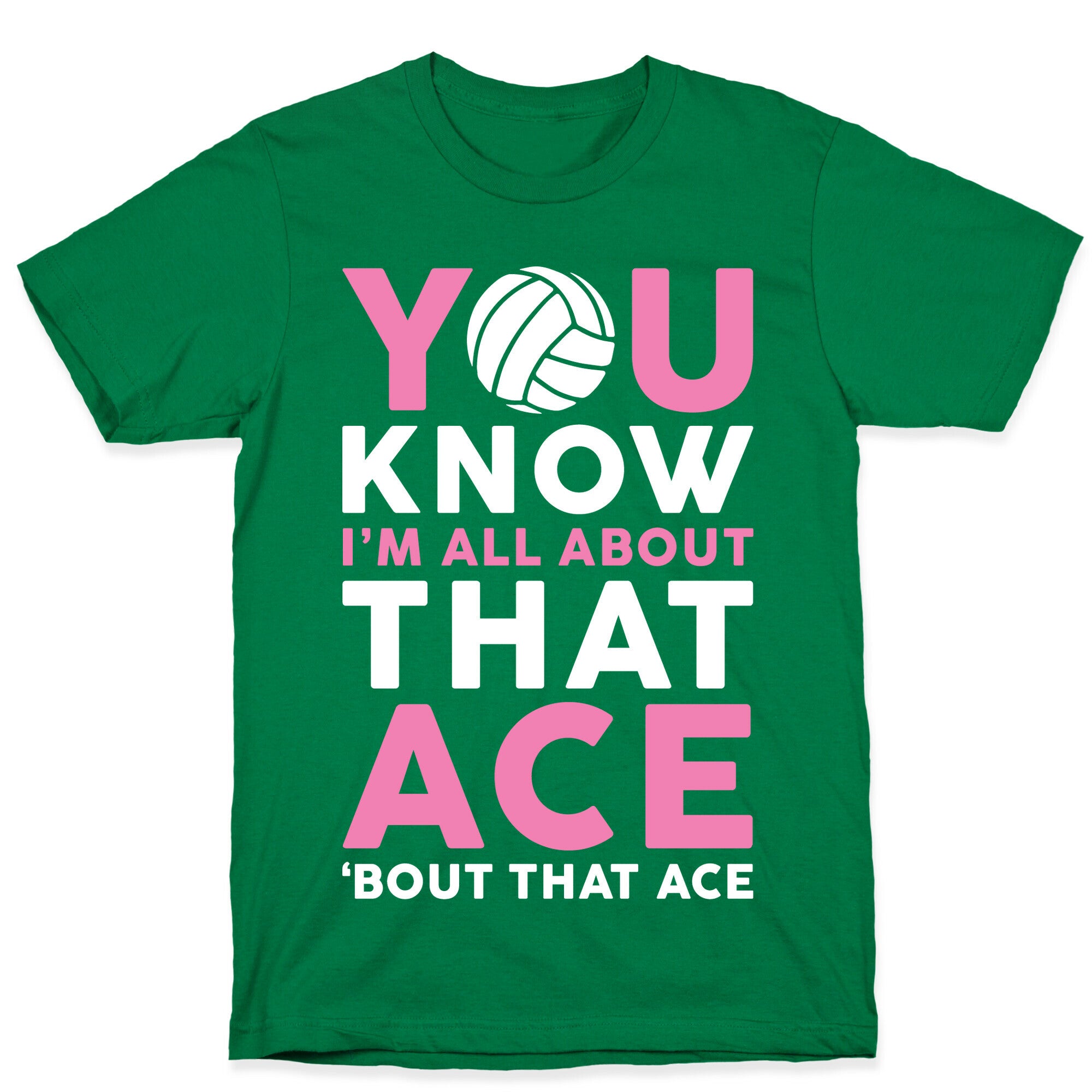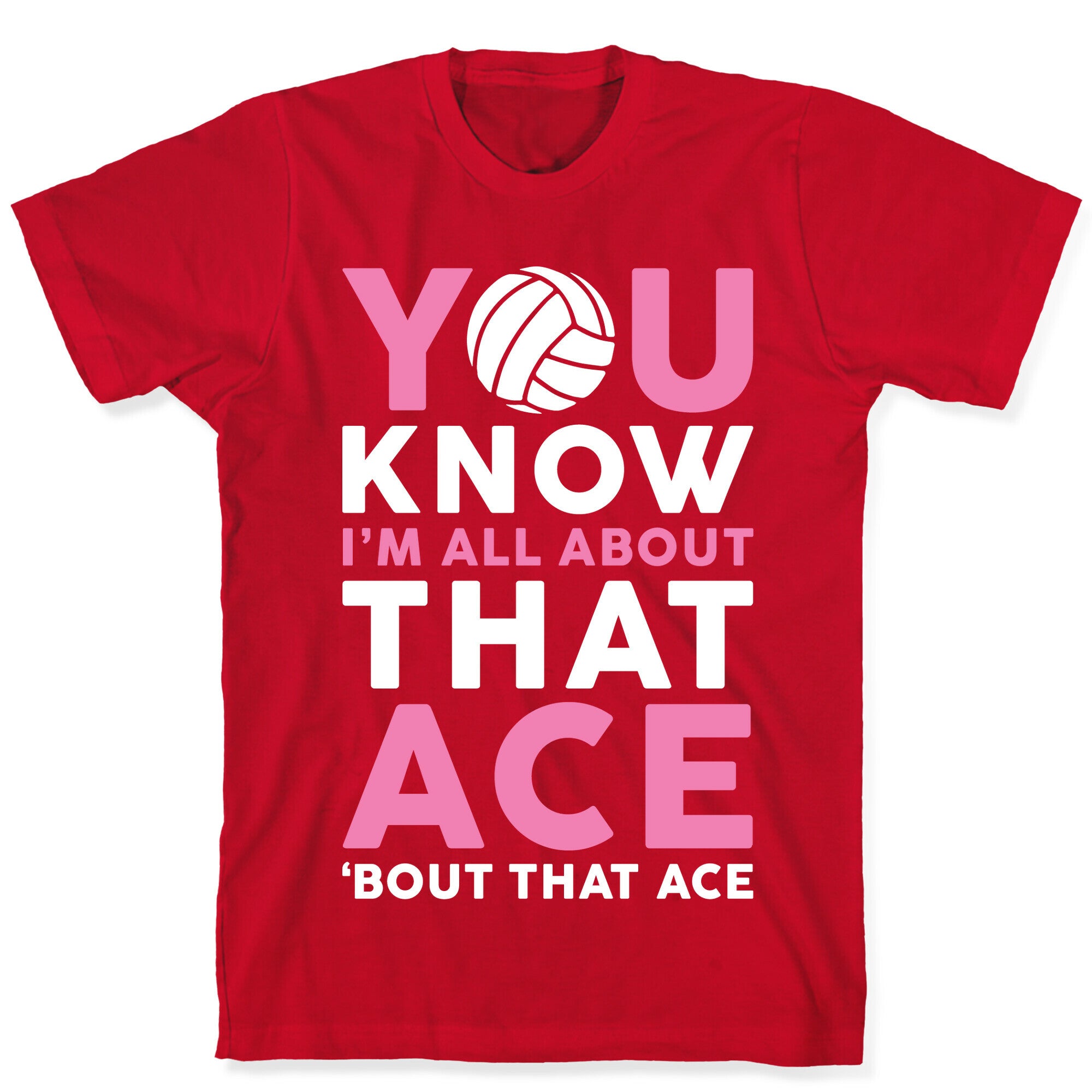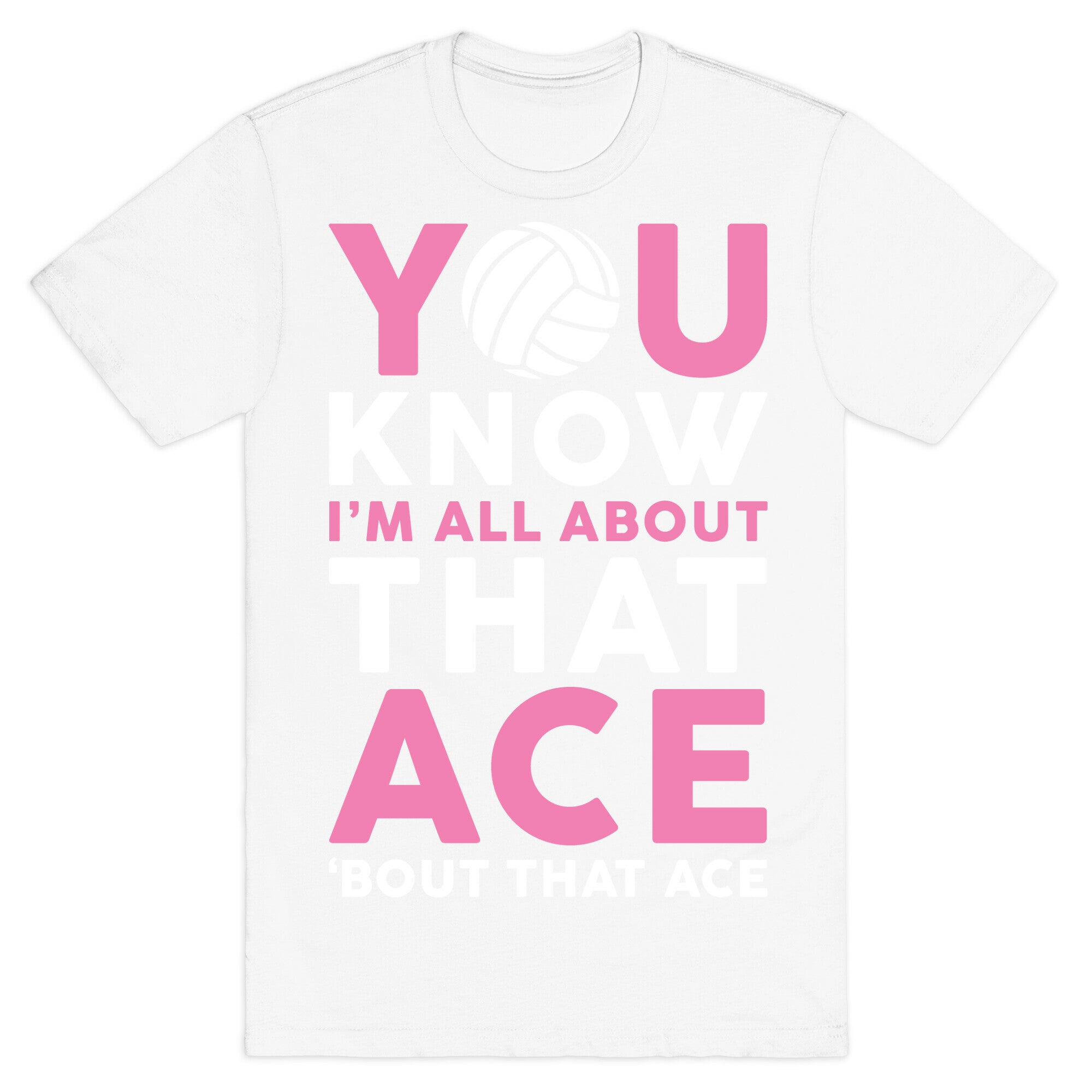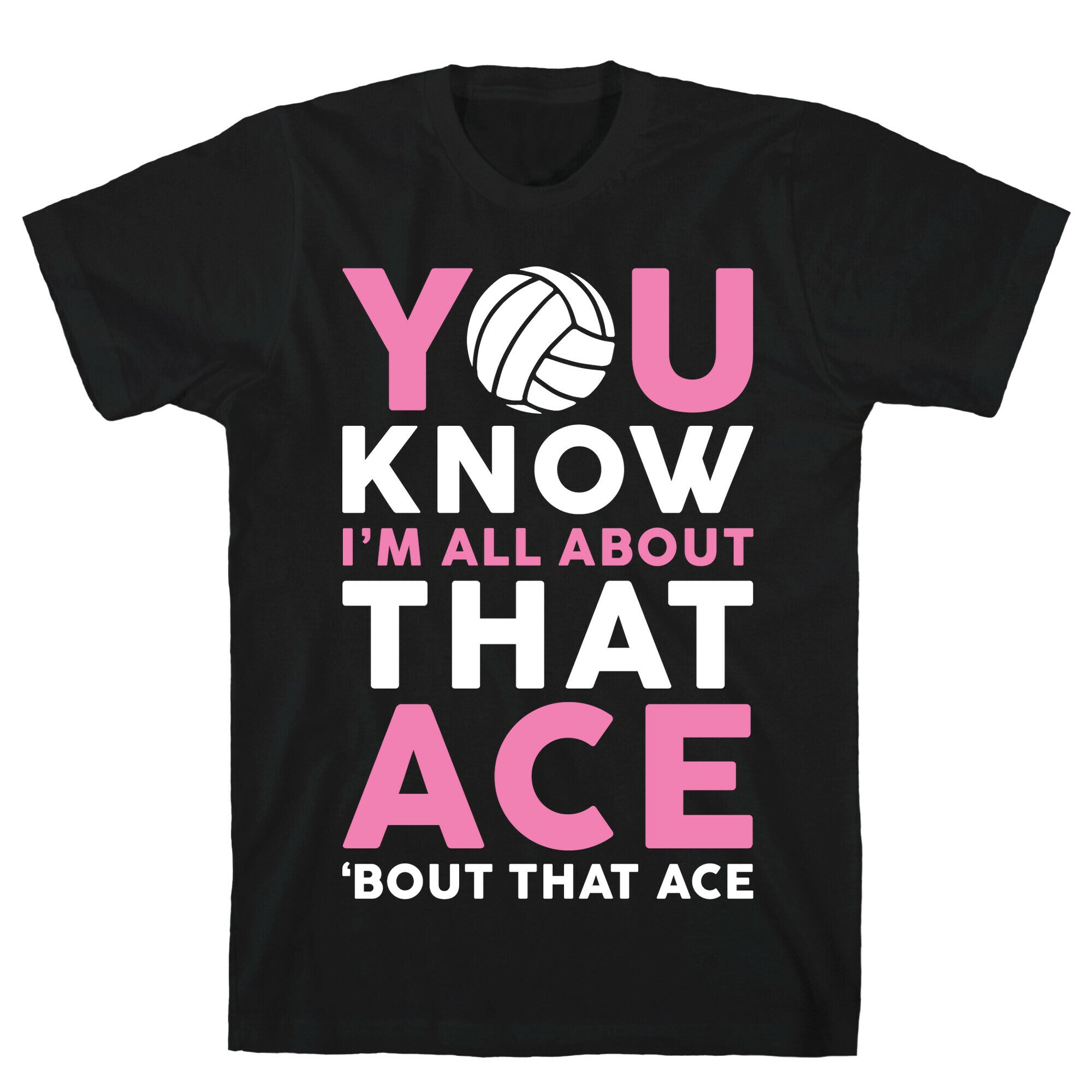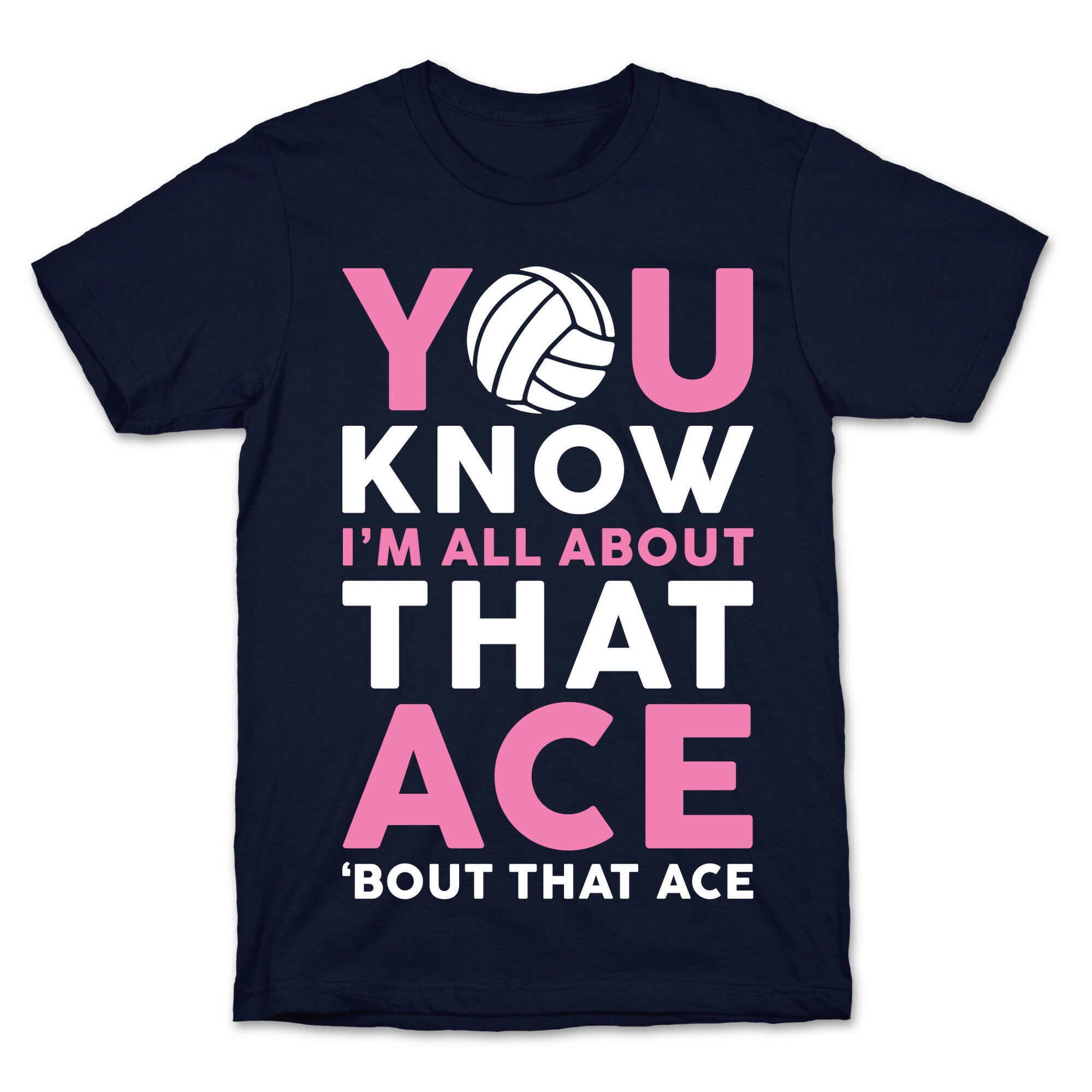 This funny volleyball shirt features a volleyball and the words "you know I'm all about that ace 'bout that ace"...