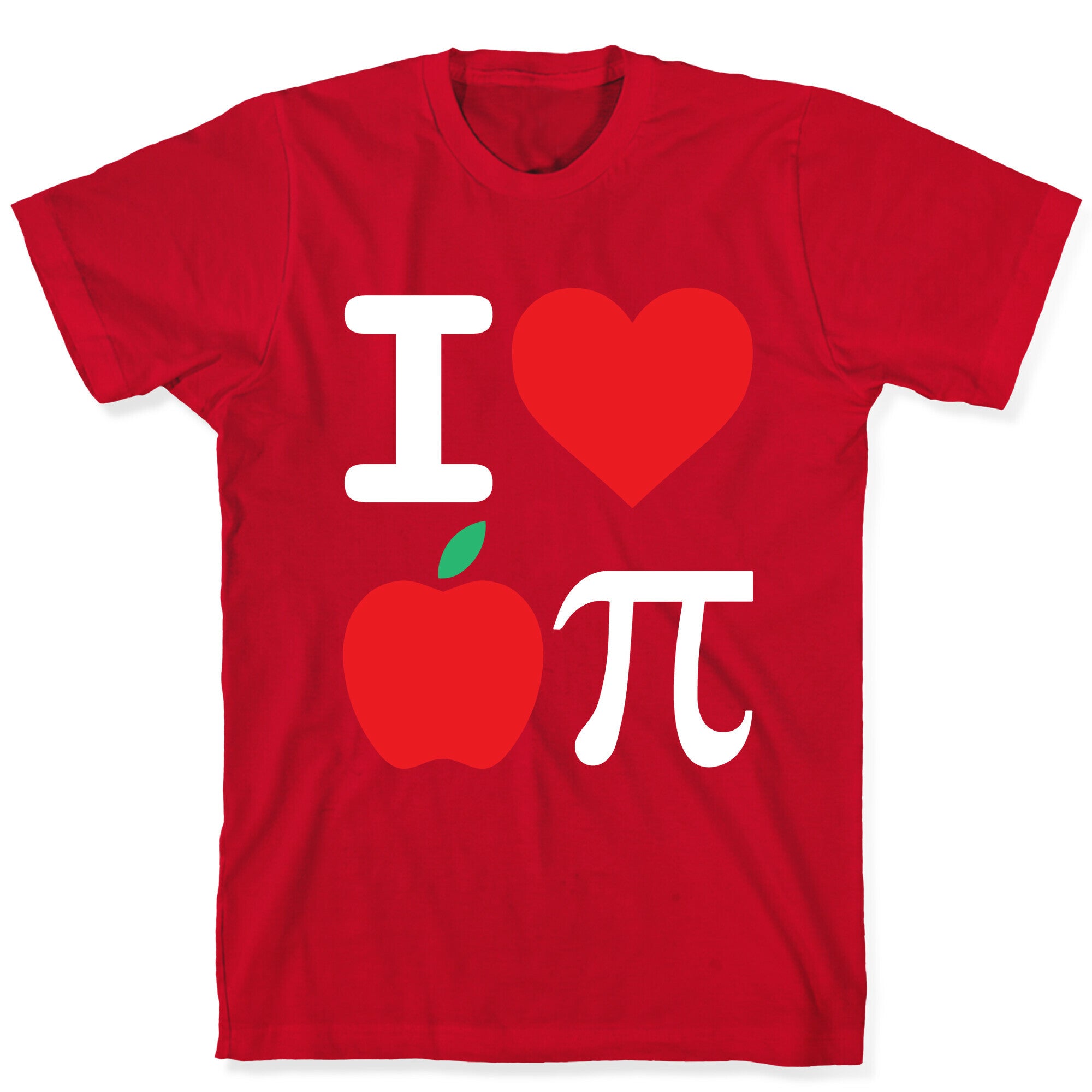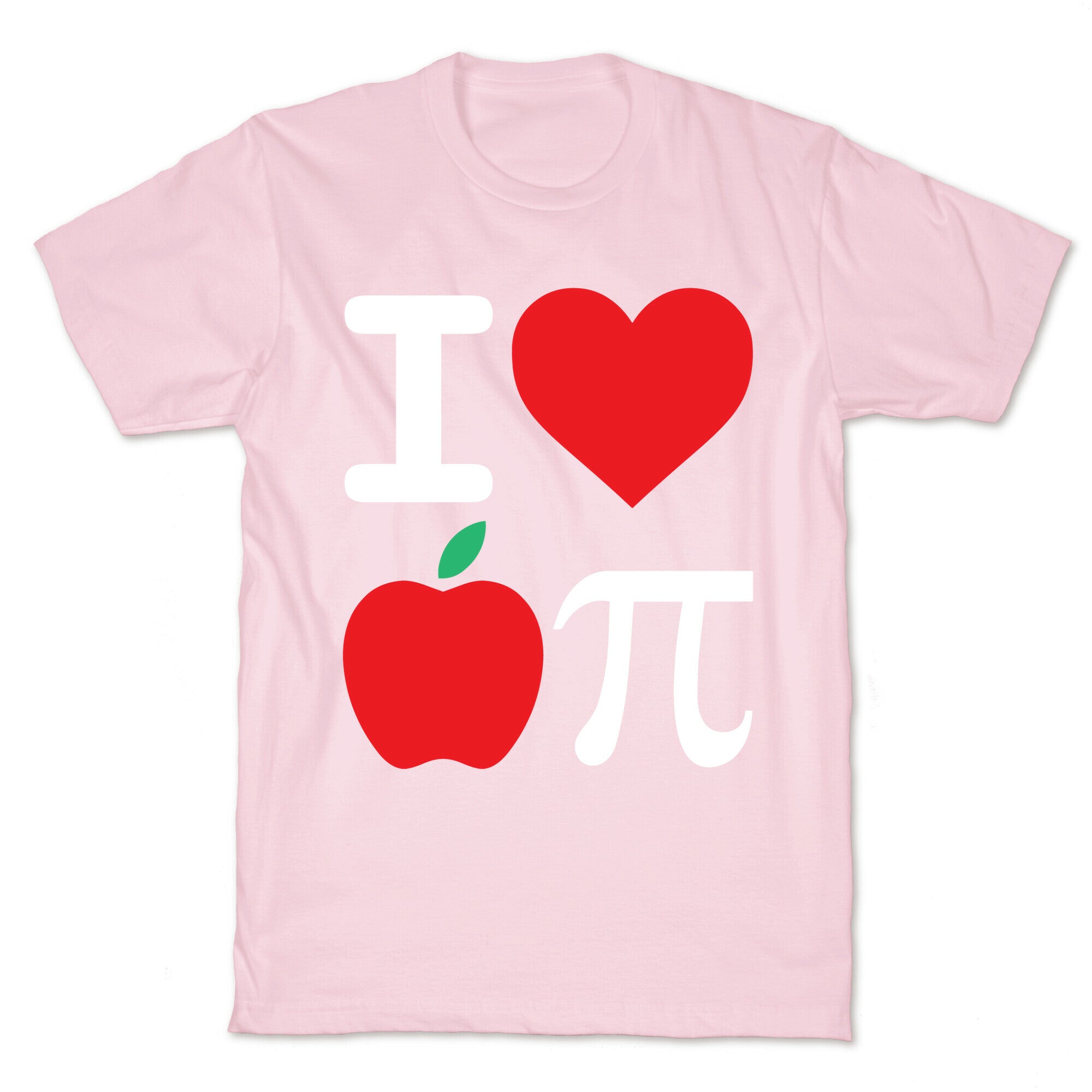 This funny shirt features a heart, an apple, the pi symbol, and when combined form the pictographic phrase "I love...