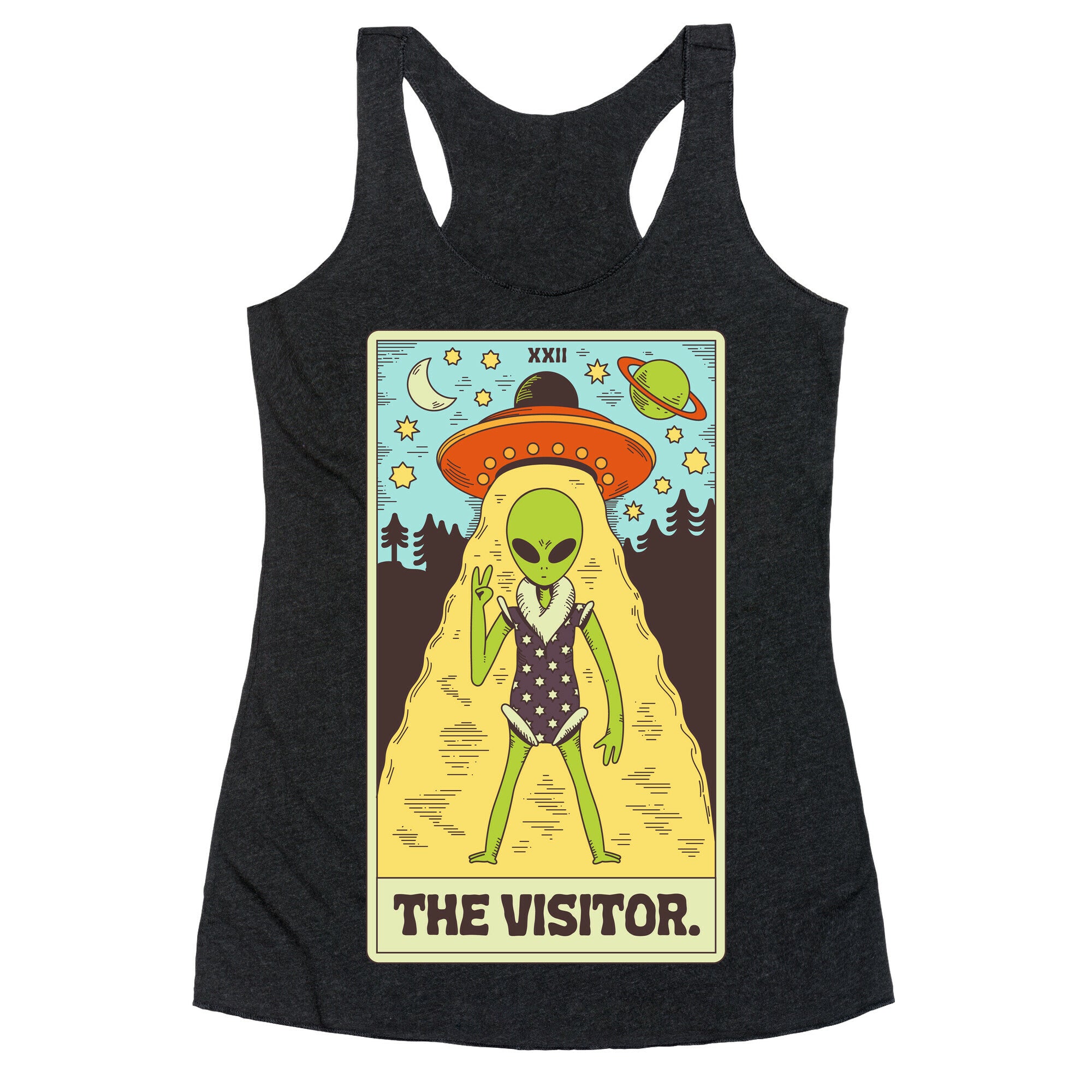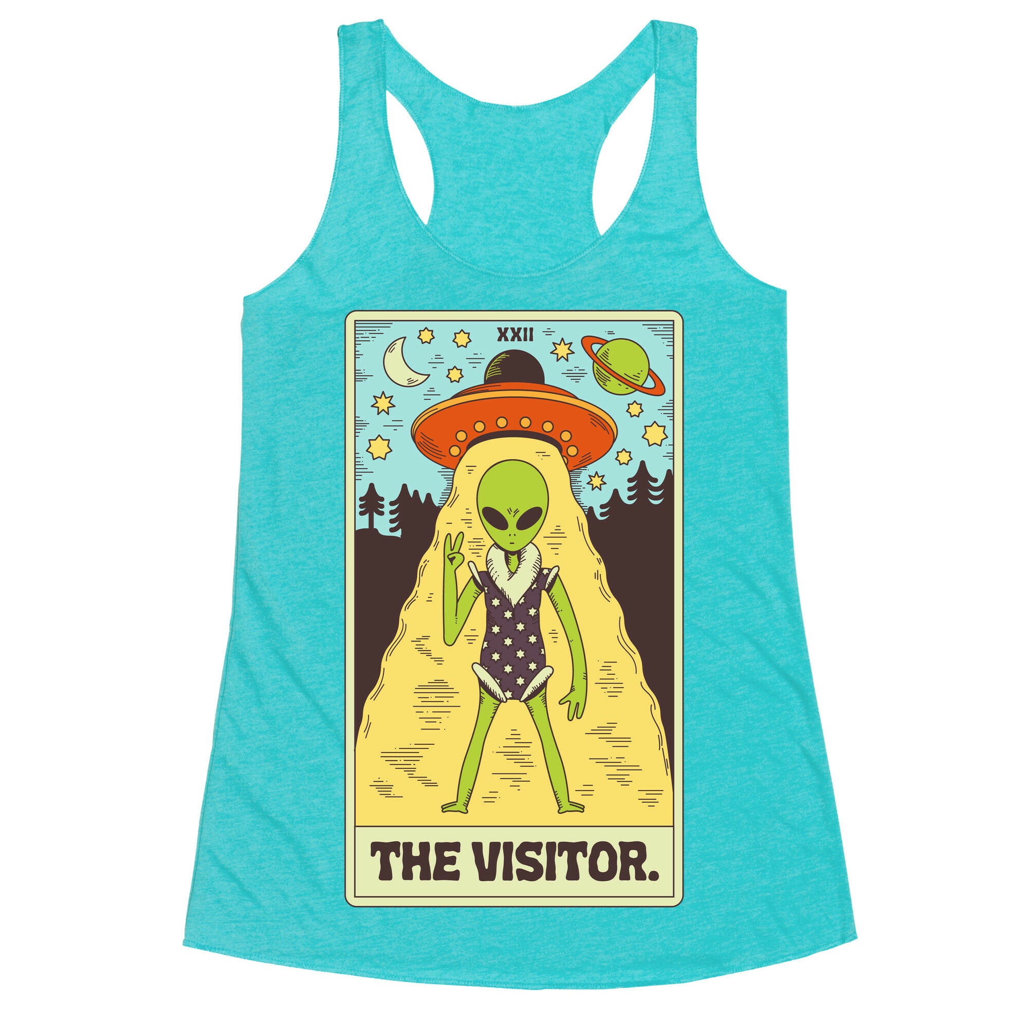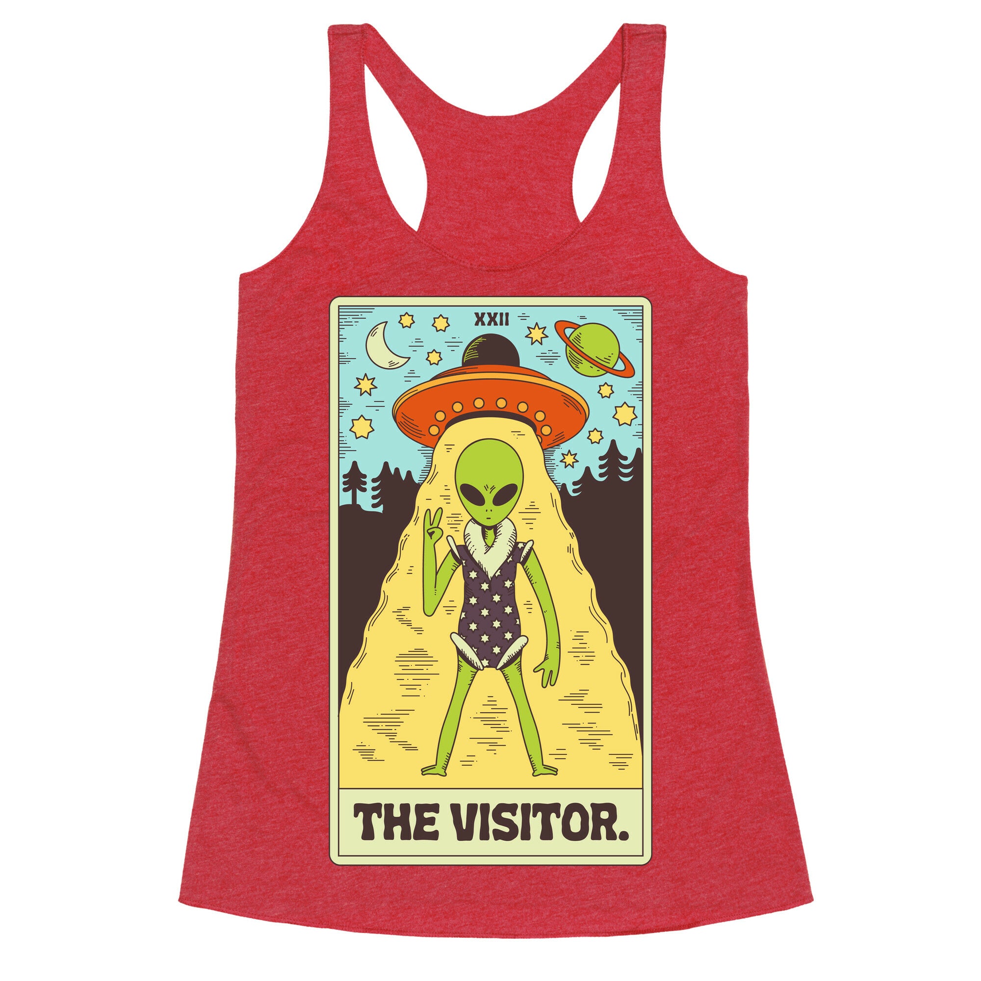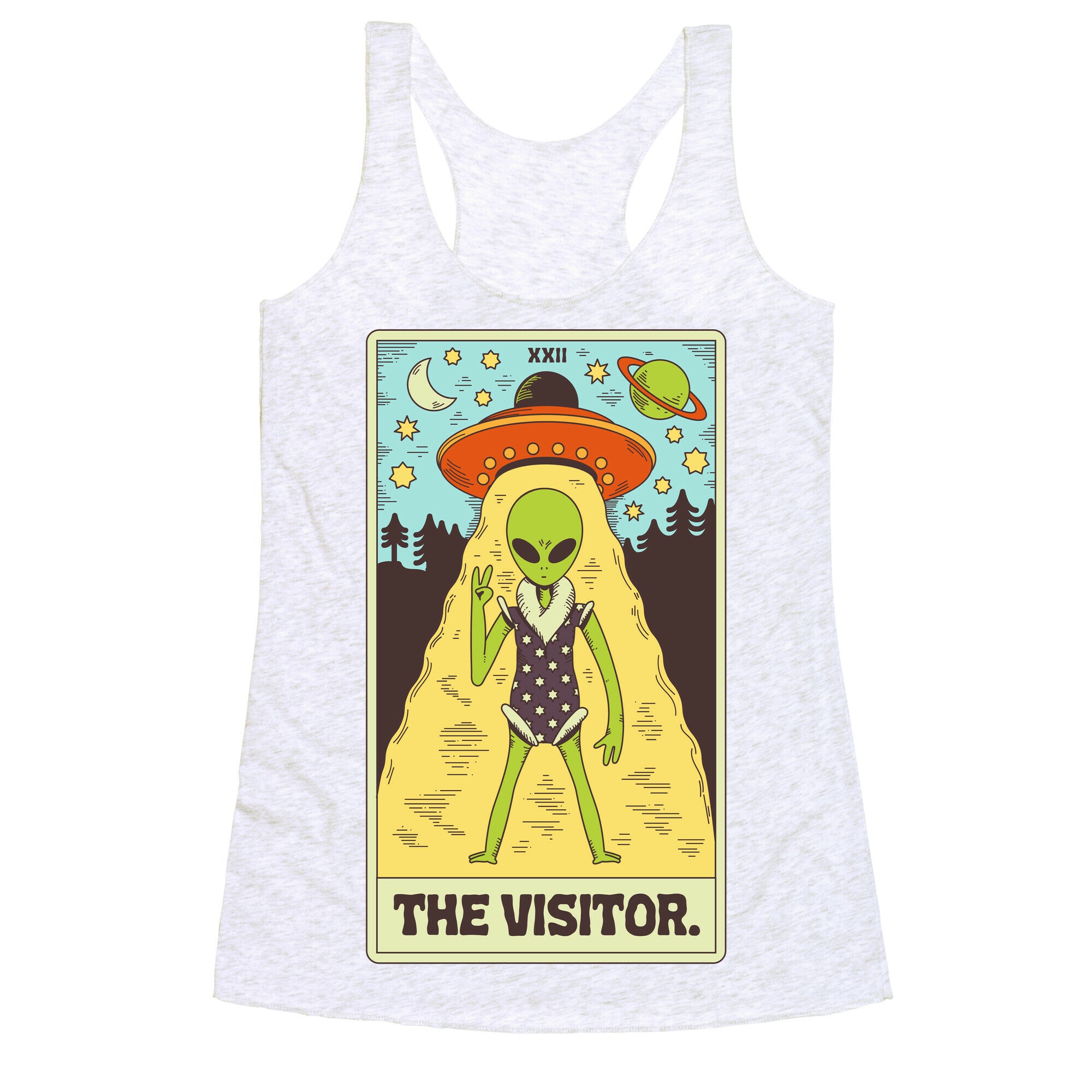 The Visitor Alien Tarot Card Racerback Tank