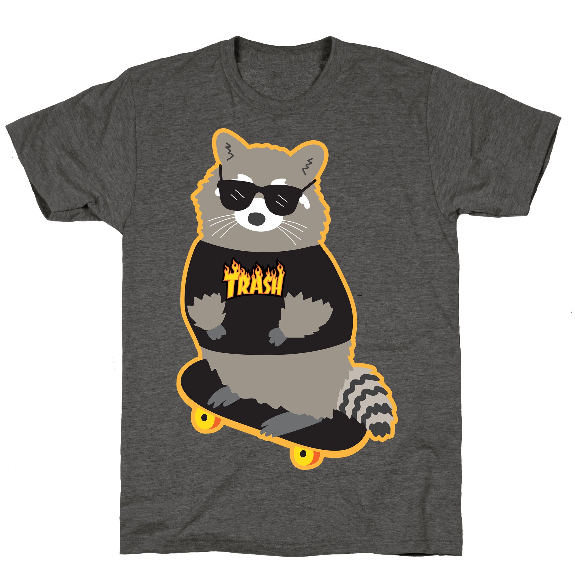 Skate your way into the dumpster with this funny, skateboarding raccoon wearing its own Trash Thrasher parody t shirt design!...