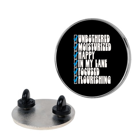 Unbothered Moisturized Happy Positive Checklist Parody Pin