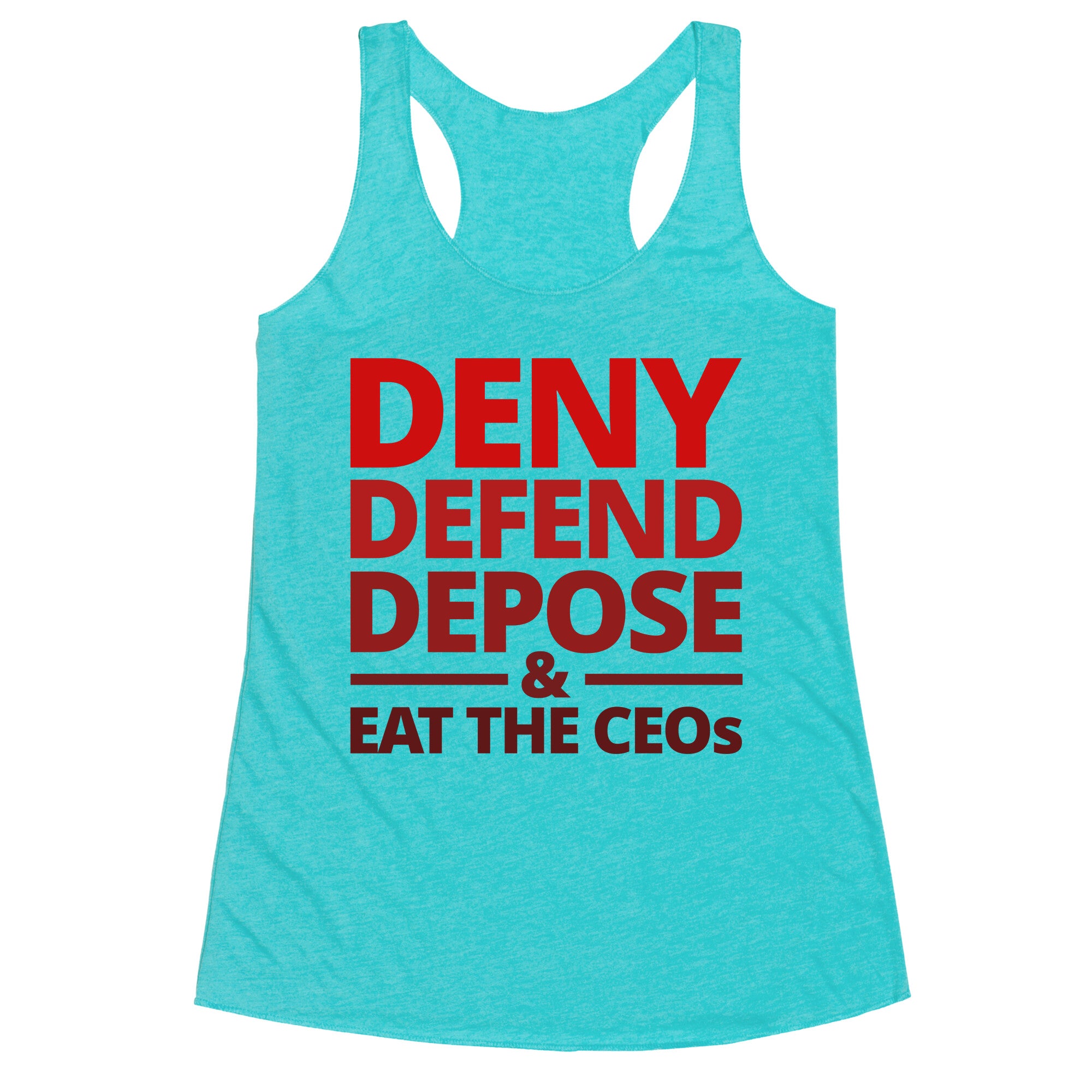 Deny Defend Depose Eat the CEOs Racerback Tank