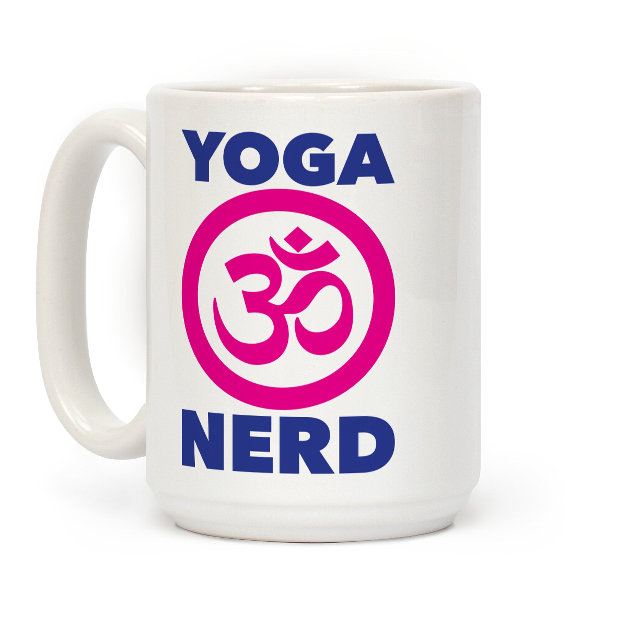 This funny yoga coffee mug features the Om symbol and the words "yoga nerd" and is perfect for geeky yoga...
