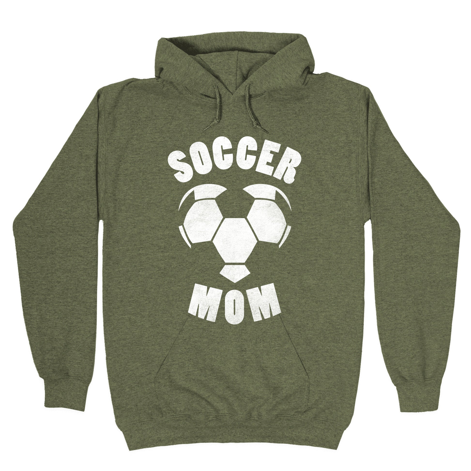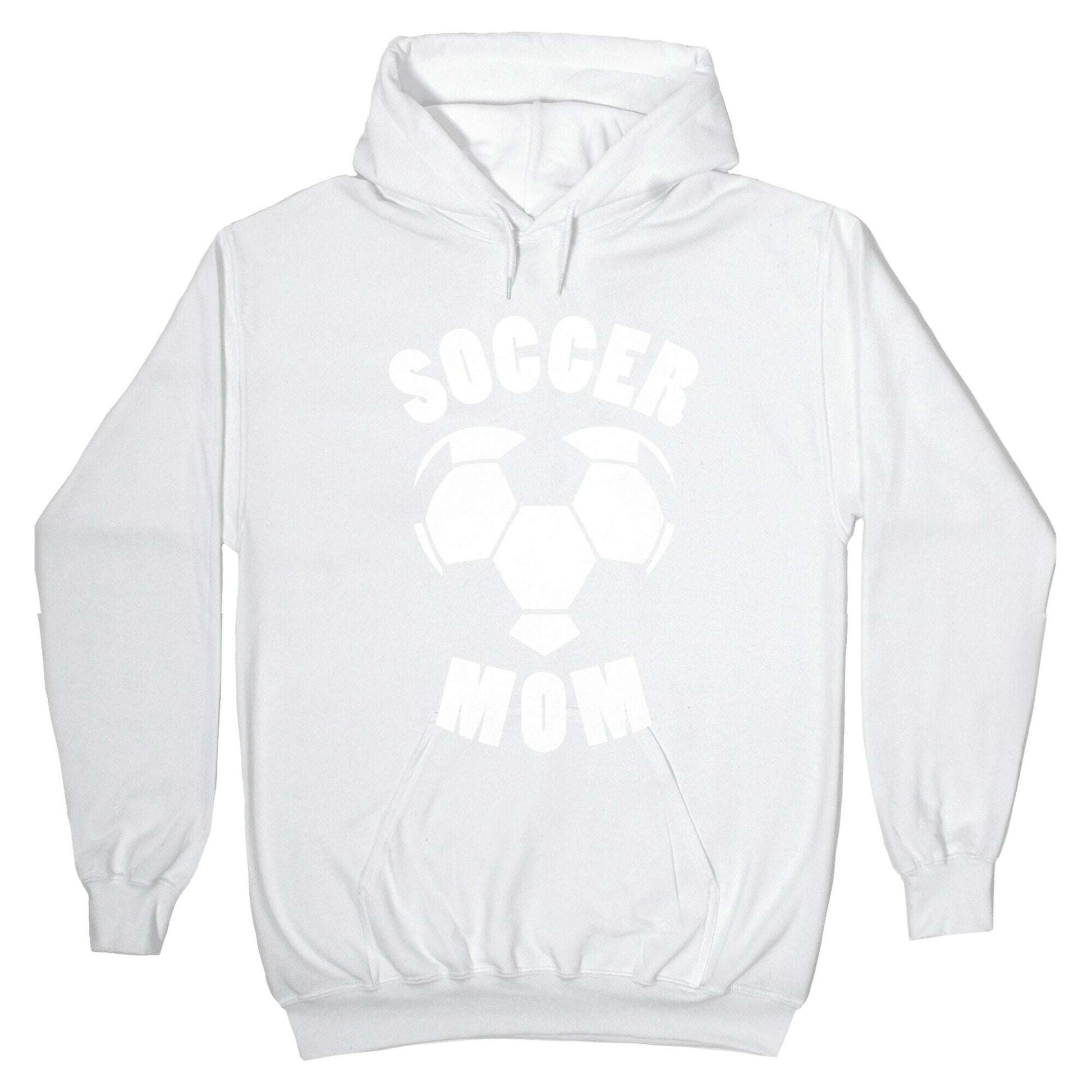 Proud soccer moms represent! Go to the game in style with this awesome tee! Our Unisex Pullover Hoodie is made from a soft 8-ounce fabric They feature a drawstring hood and front kangaroo pocket. Great for layering! Preshrunk for your convenience! Printed in the USA. Made with 50% Cotton and 50% Polyester.