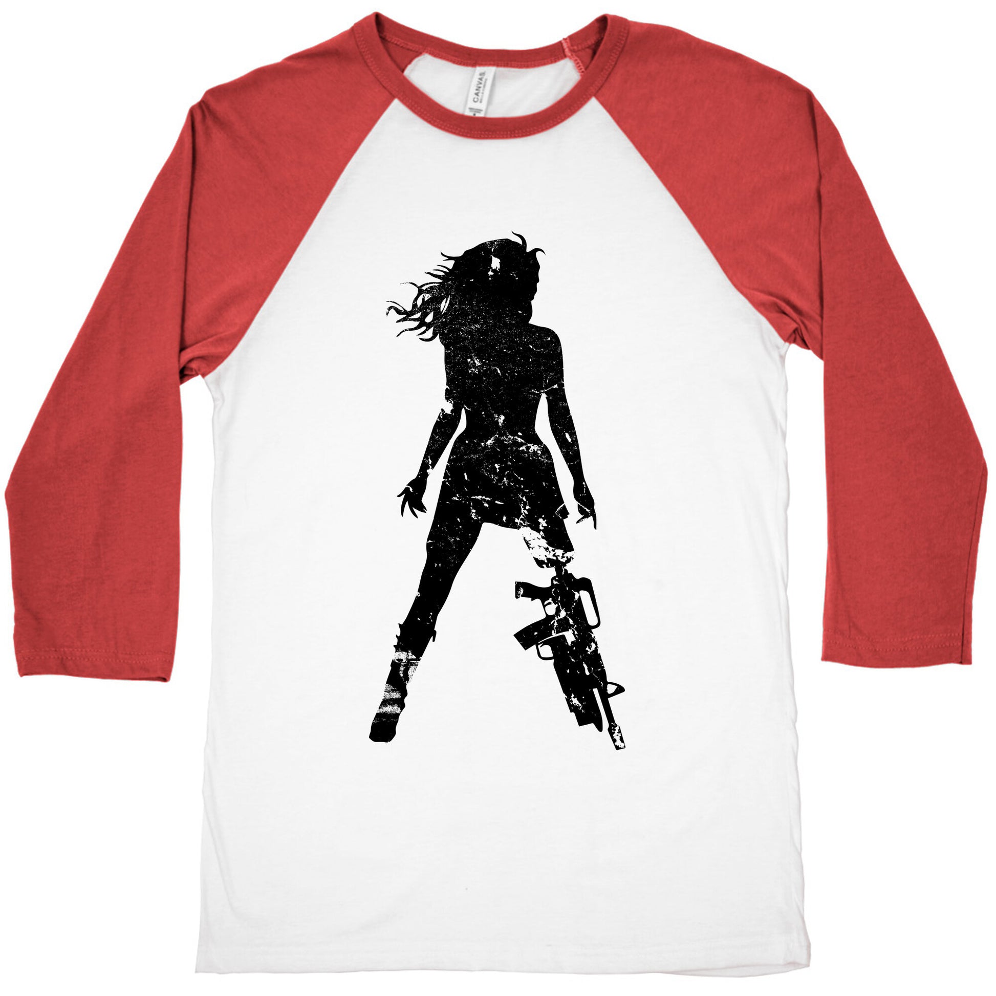 When our Planet becomes Planet Terror there is only one hope left for humanity and she's just Cherry! Kick some zombie ass or work it out in this bad ass and nerdy shirt! Our exceedingly soft and relaxed fit Tri-Blend Baseball Tee features a three-quarter length sleeve, crew neck, fun contrasting color sleeves and neck trim. Preshrunk for your convenience! Printed in the USA. Made with 50% Polyester, 25% Cotton and 25% Rayon