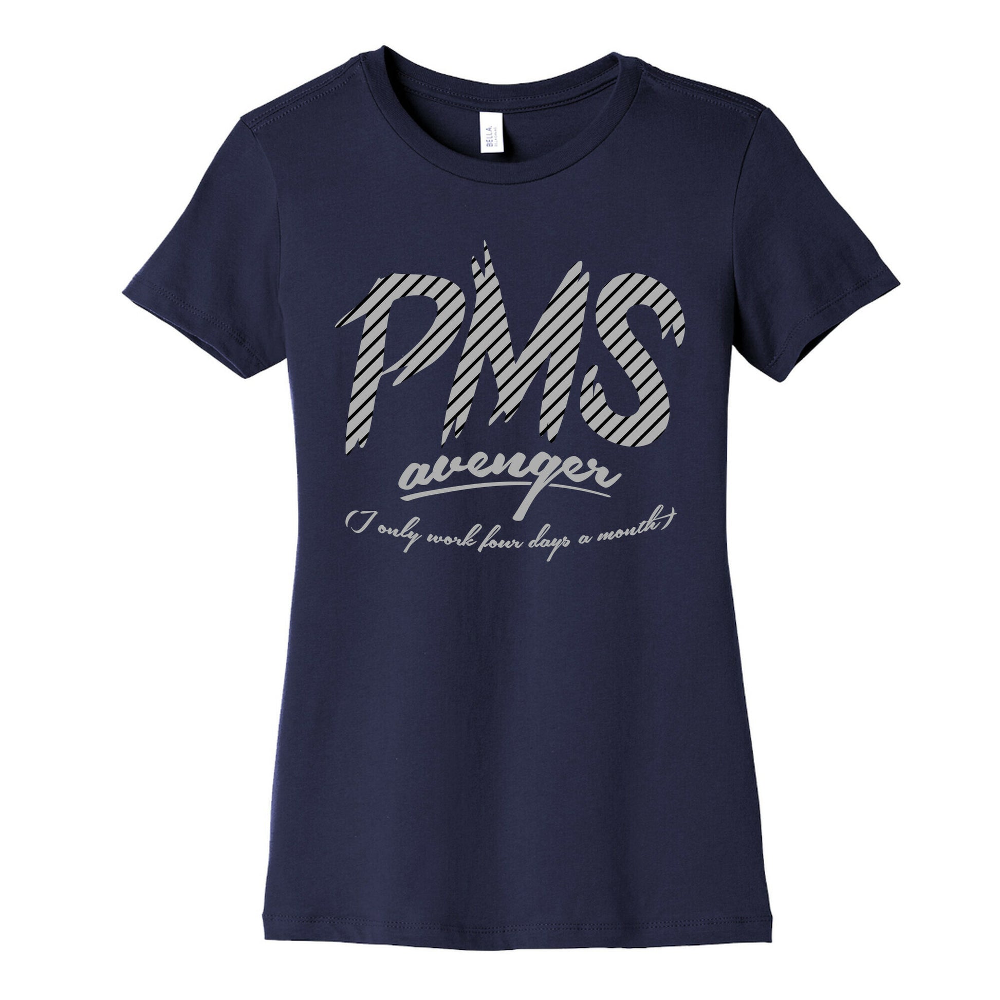 The PMS Avenger. I only work 4 days a month. Is there a problem with that?Our slim fit Women’s Cotton Tees, are made with exceedingly soft 100% cotton. They feature a relaxed neckline, and the sleeves and bottom, are hemmed for durability. Preshrunk for your convenience! Printed in the USA. Made with 100% Cotton. Colors such as gray, is made up of 90% cotton and 10% polyester, and deep pink is made up of 50% cotton and 50% polyester.