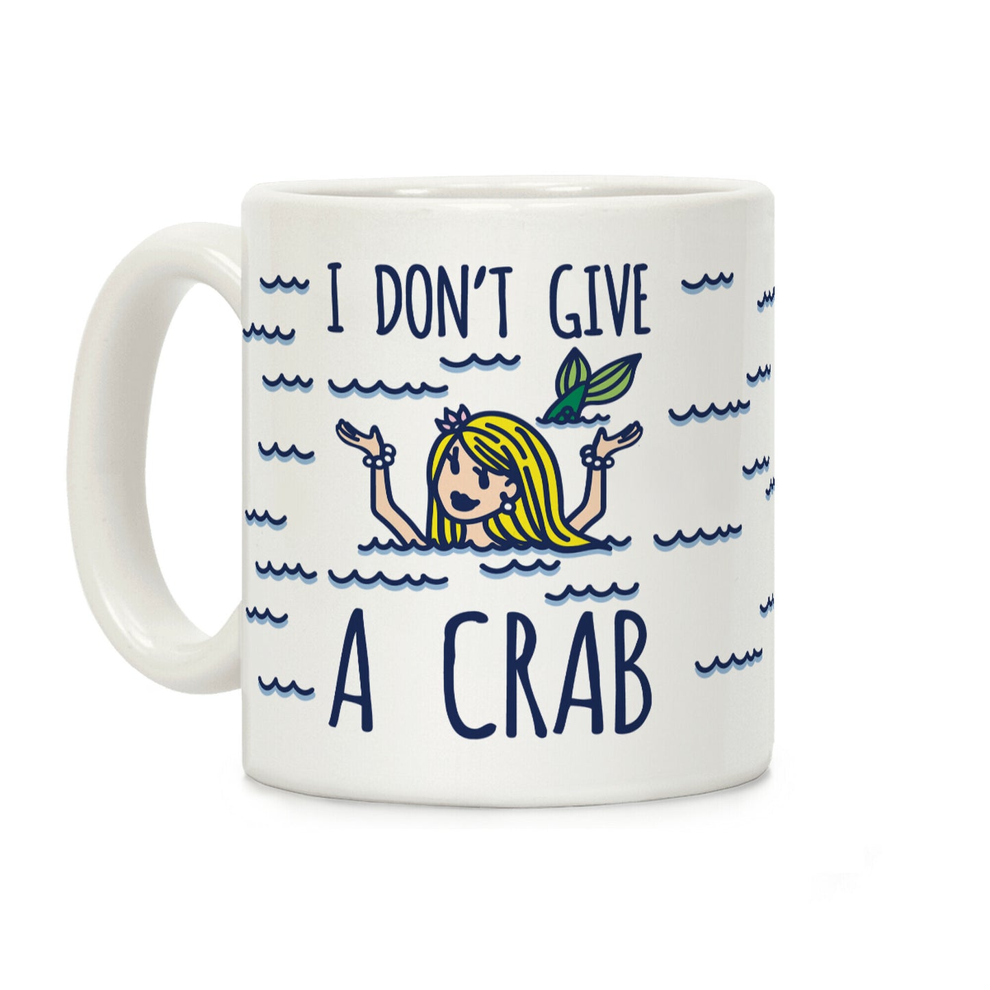 You may not give a crap, but mermaids don't give a crab! Show off your sassy side with this cute and funny, mermaid coffee mug! Our Mug features large handles for easy gripping and a wrap-around print. These heavy-duty Mugs are both dishwasher and microwave safe. Printed in the USA.