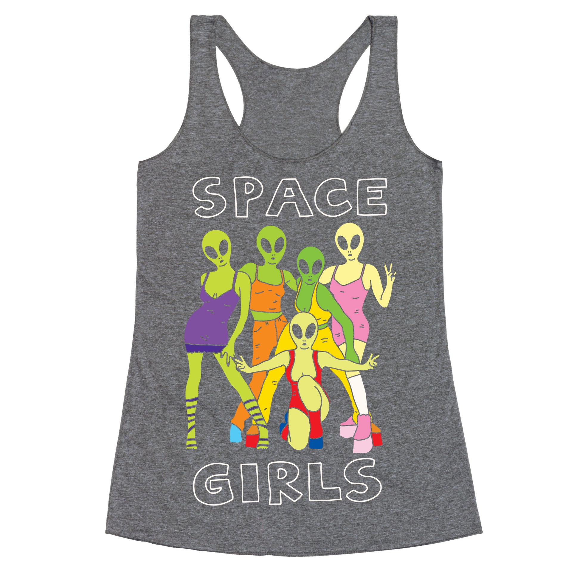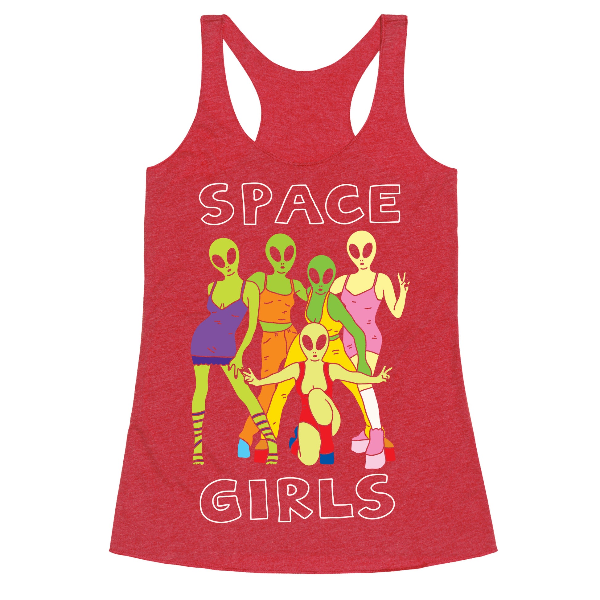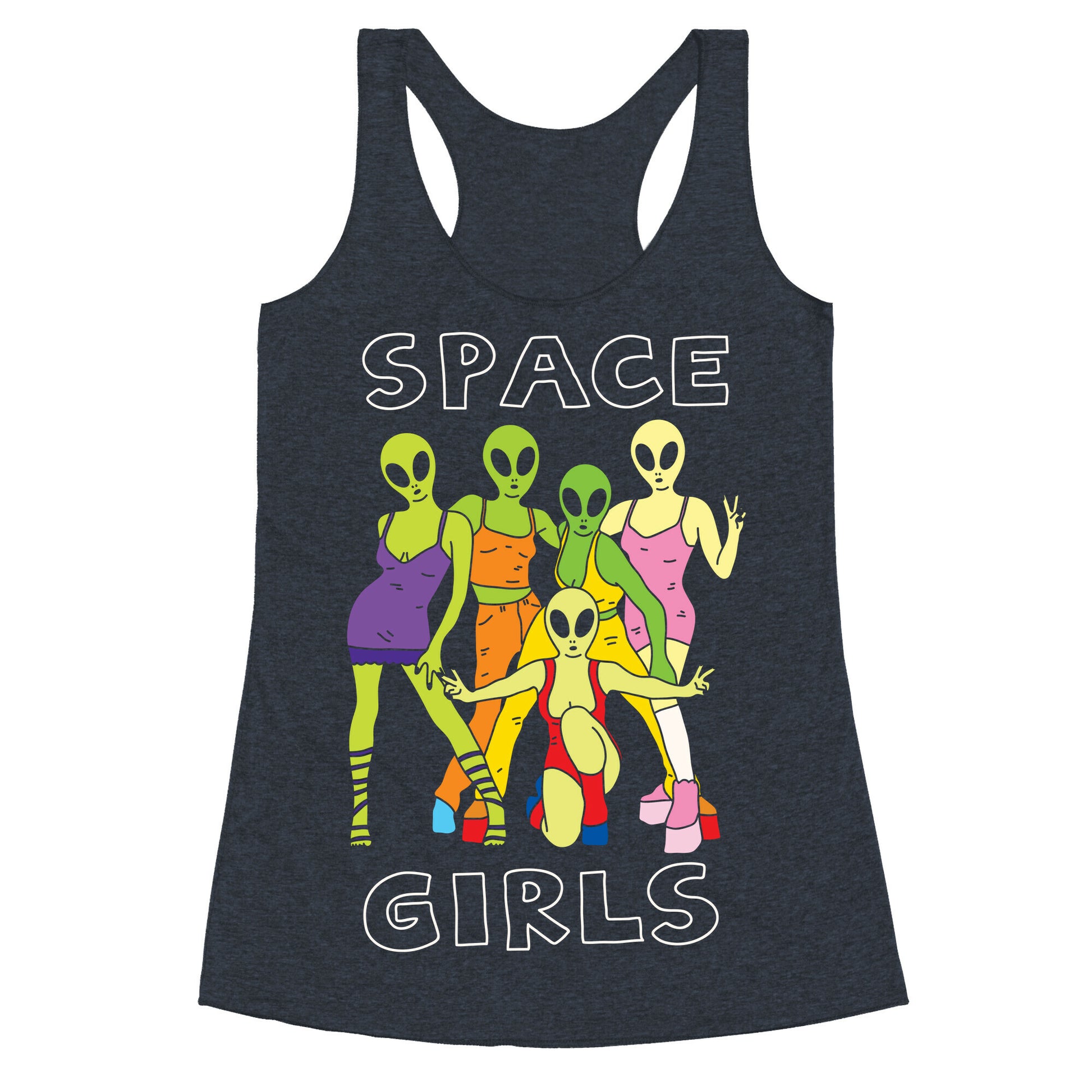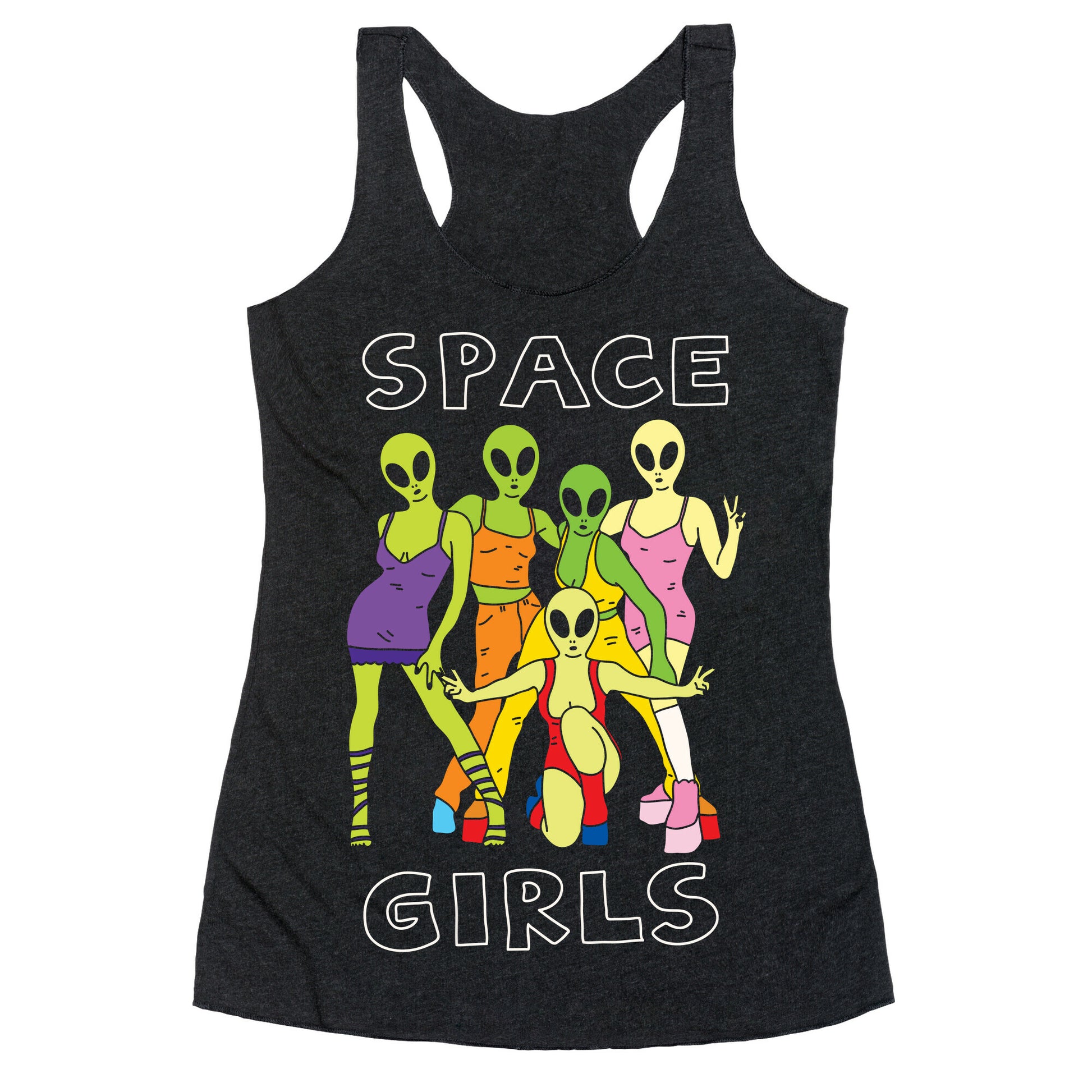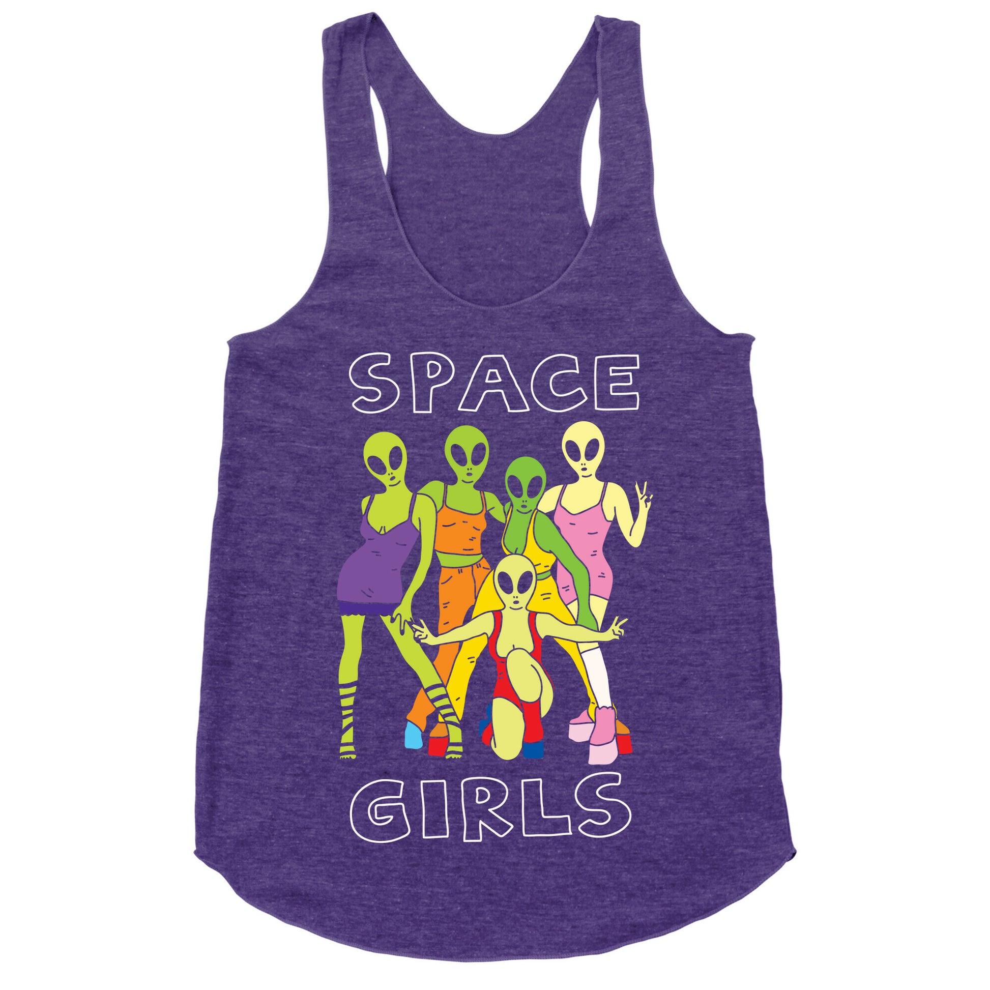 Show off your love of that super rad pop girl group with this 90s inspired, alien lover's, outer space shirt! Let the world know how much you love aliens and 90s pop girl groups!Our super comfortable Women’s Raw Edge Racerback features a soft tri-blend, unhemmed fabric, with a fashionable bell-like shape for the bottom. Preshrunk for your convenience! Printed in the USA. Made with 50% Polyester 25% Ring Spun Cotton, and 25% Rayon.