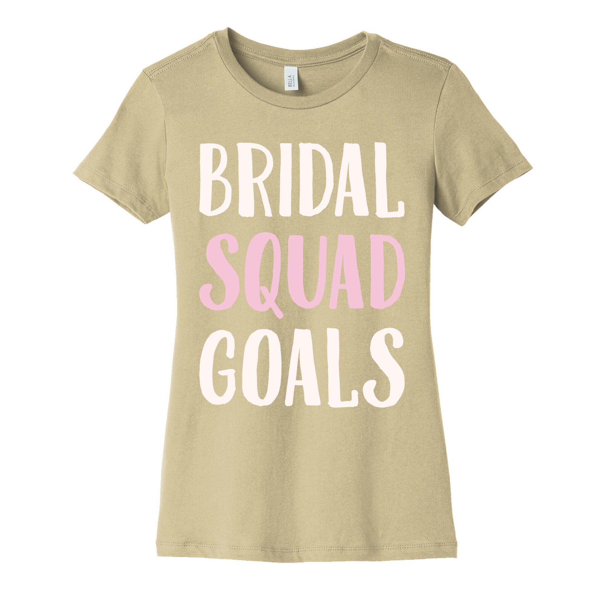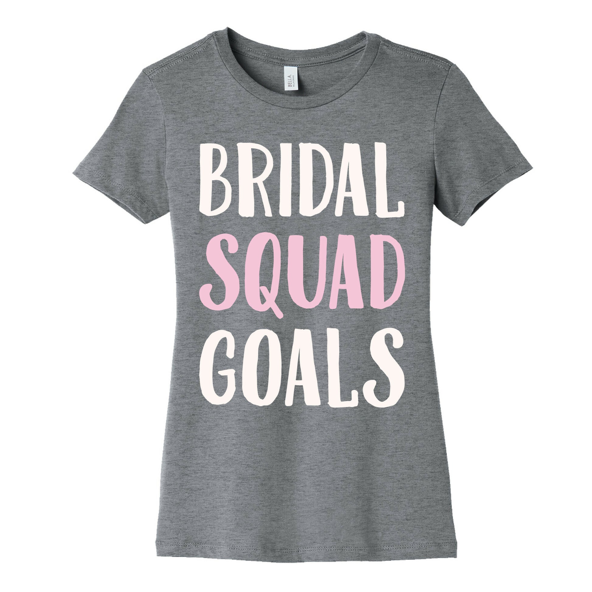 This Bride's squad is full of the baddest bridal bitches ever! Your bridal squad is every bride's goals! Go out and party hard with your bridesmaids at your bachelorette party with these cute and sassy, bridesmaids, bachelorette party, squad goals shirt!Our slim fit Women’s Cotton Tees, are made with exceedingly soft 100% cotton. They feature a relaxed neckline, and the sleeves and bottom, are hemmed for durability. Preshrunk for your convenience! Printed in the USA. Made with 100% Cotton. Colors such as gray, is made up of 90% cotton and 10% polyester, and deep pink is made up of 50% cotton and 50% polyester.