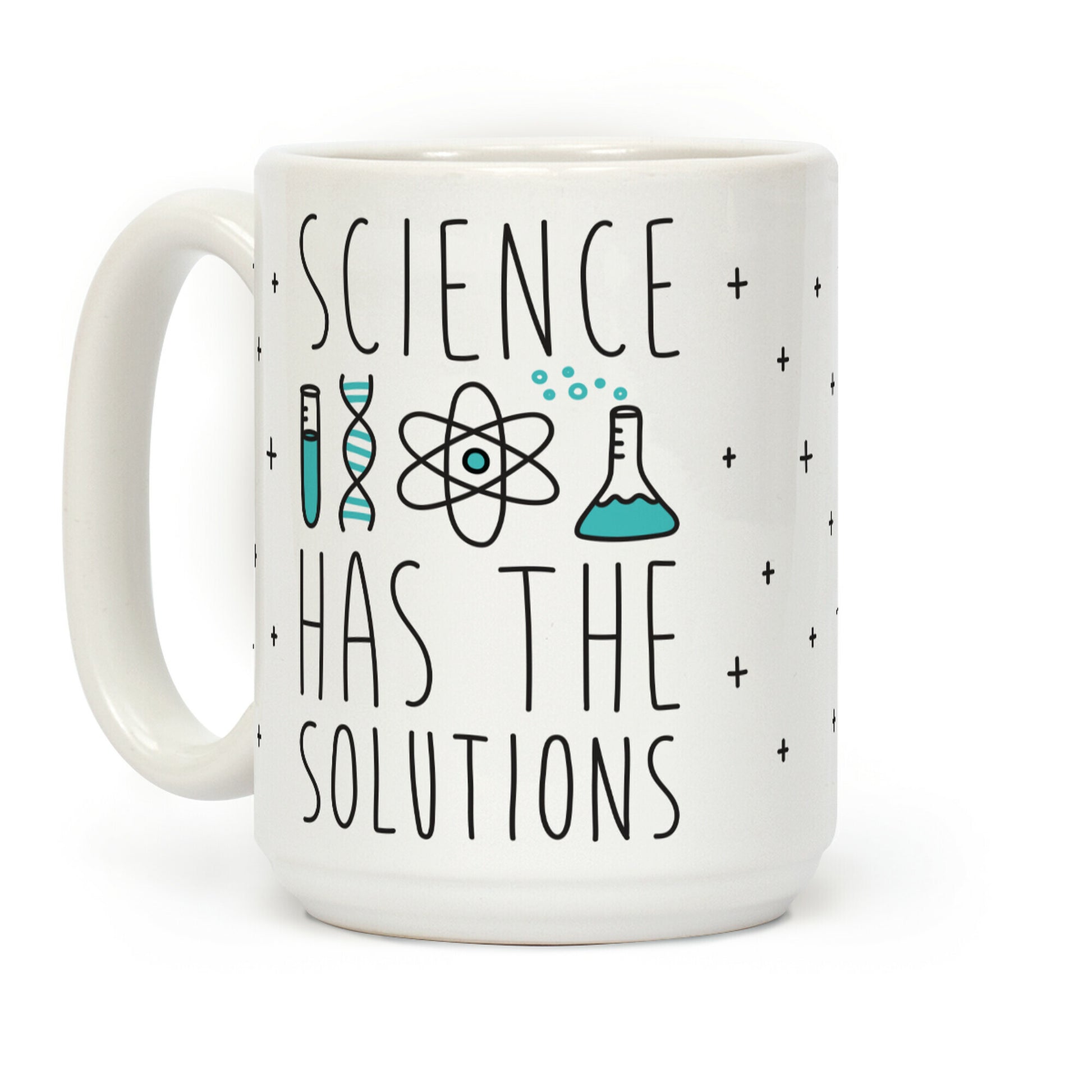 Solve all of the world's problems with science! Celebrate scientific research and technology with this "Science Has The Solutions" science pun design! Perfect for a scientist, science lover, geek gifts, science nerd, and standing up for science! Our Mug features large handles for easy gripping and a wrap-around print. These heavy-duty Mugs are both dishwasher and microwave safe. Printed in the USA