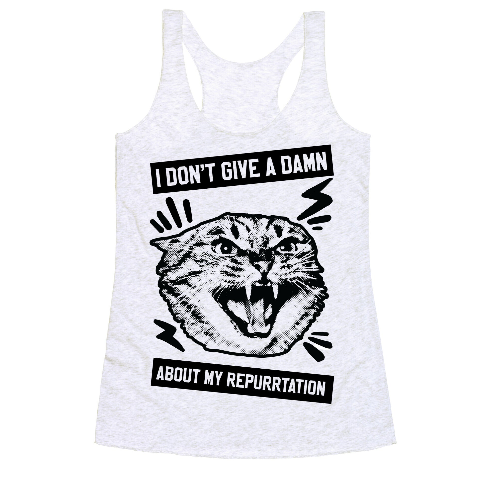 This cat shirt is the perfect joan jett parody mashed up with a cat pun, like "i don't give a damn about my repurrtation. This feminist shirt is great for fans of feminist memes, cat memes and joan jett shirts.Our super comfortable Women’s Raw Edge Racerback features a soft tri-blend, unhemmed fabric, with a fashionable bell-like shape for the bottom. Preshrunk for your convenience! Printed in the USA. Made with 50% Polyester 25% Ring Spun Cotton, and 25% Rayon.