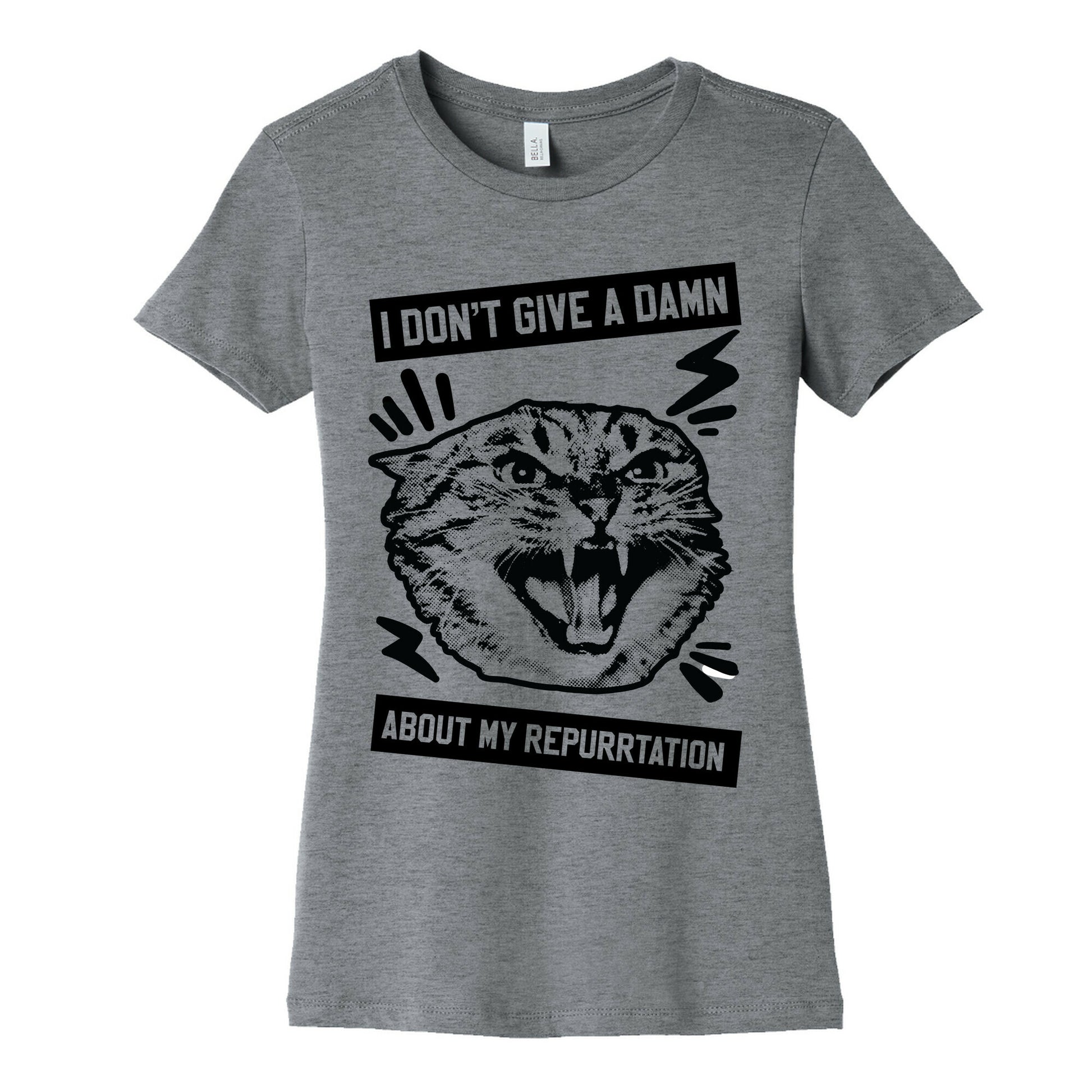 This cat shirt is the perfect joan jett parody mashed up with a cat pun, like "i don't give a damn about my repurrtation. This feminist shirt is great for fans of feminist memes, cat memes and joan jett shirts.Our slim fit Women’s Cotton Tees, are made with exceedingly soft 100% cotton. They feature a relaxed neckline, and the sleeves and bottom, are hemmed for durability. Preshrunk for your convenience! Printed in the USA. Made with 100% Cotton. Colors such as gray, is made up of 90% cotton and 10% polyester, and deep pink is made up of 50% cotton and 50% polyester.