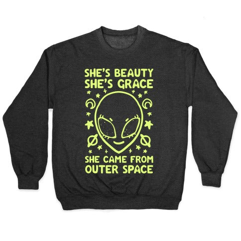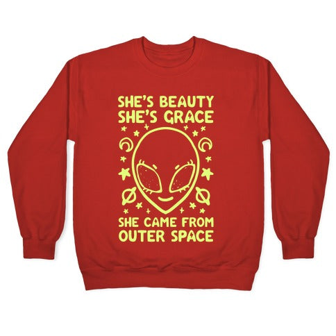 She's Beauty She's Grace She Came From Outer Space Crewneck Sweatshirt