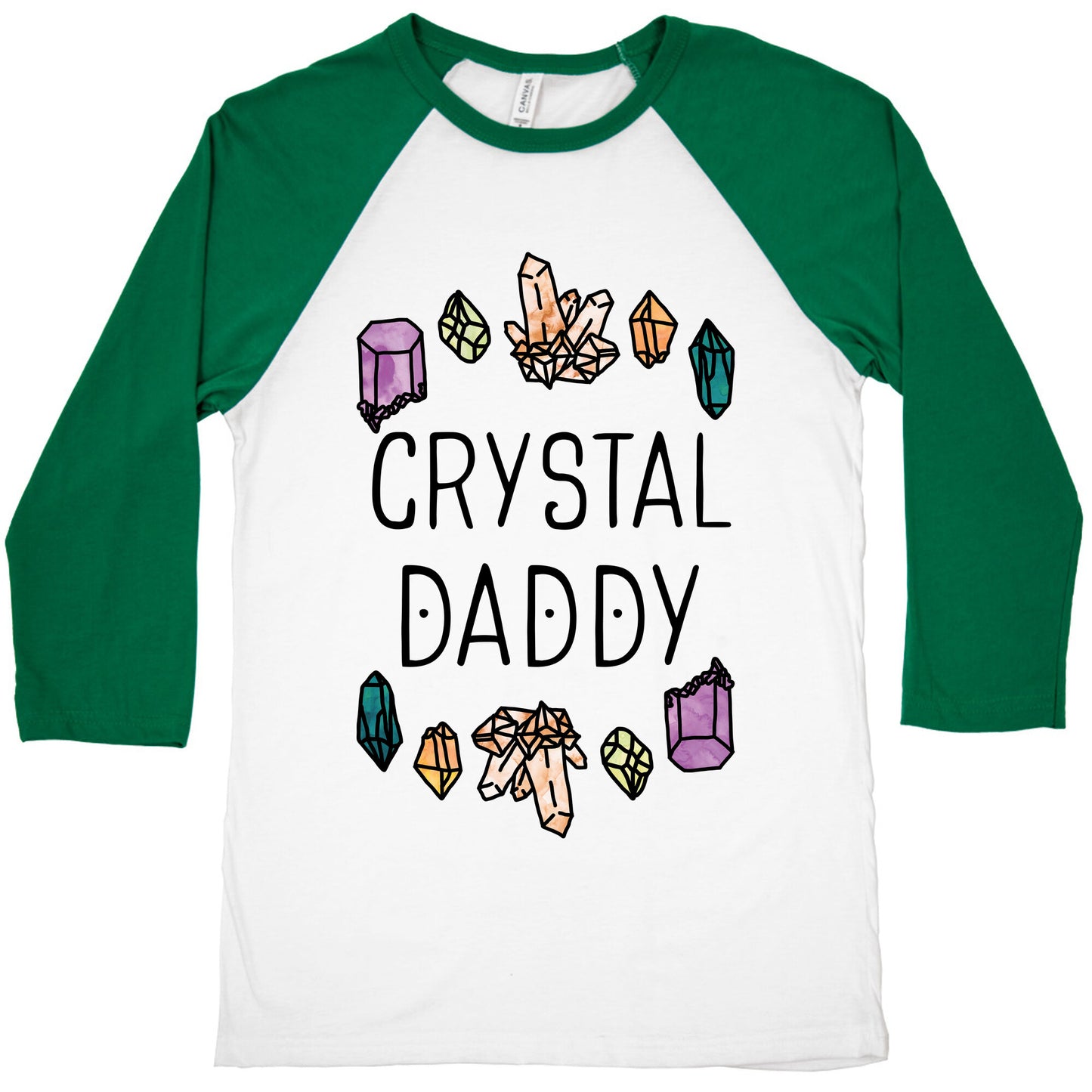 Recharge with this cute crystal lover's design. This design features illustrations of various quartzes along with the phrase "Crystal Daddy." Whether your a father that loves crystals or your crystals are your children, this design is for you. Our exceedingly soft and relaxed fit Tri-Blend Baseball Tee features a three-quarter length sleeve, crew neck, fun contrasting color sleeves and neck trim. Preshrunk for your convenience! Printed in the USA. Made with 50% Polyester, 25% Cotton and 25% Rayon