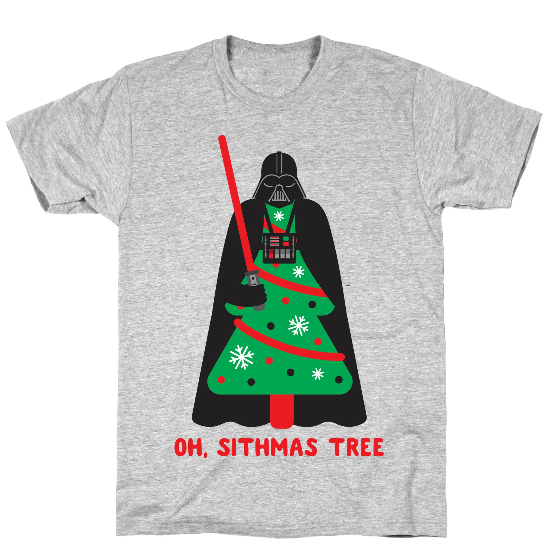 Join the dark side this Christmas with this nerdy, "Oh, Sithmas Tree" Star Wars parody design! Perfect for a Christmas party, Star Wars fans, sith lord, nerdy humor, Christmas parodies, puns and pop culture! Our fitted Unisex Cotton tee is made from an exceedingly soft 100% ring spun cotton. It features a crew neckline with hemmed sleeves and bottom for durability. Preshrunk for your convenience! Printed in the USA. Made with 100% Ring Spun Cotton. Athletic Gray is made up of 90% cotton and 10% polyester. Other heathered colors are made of 52% cotton and 48% polyester.