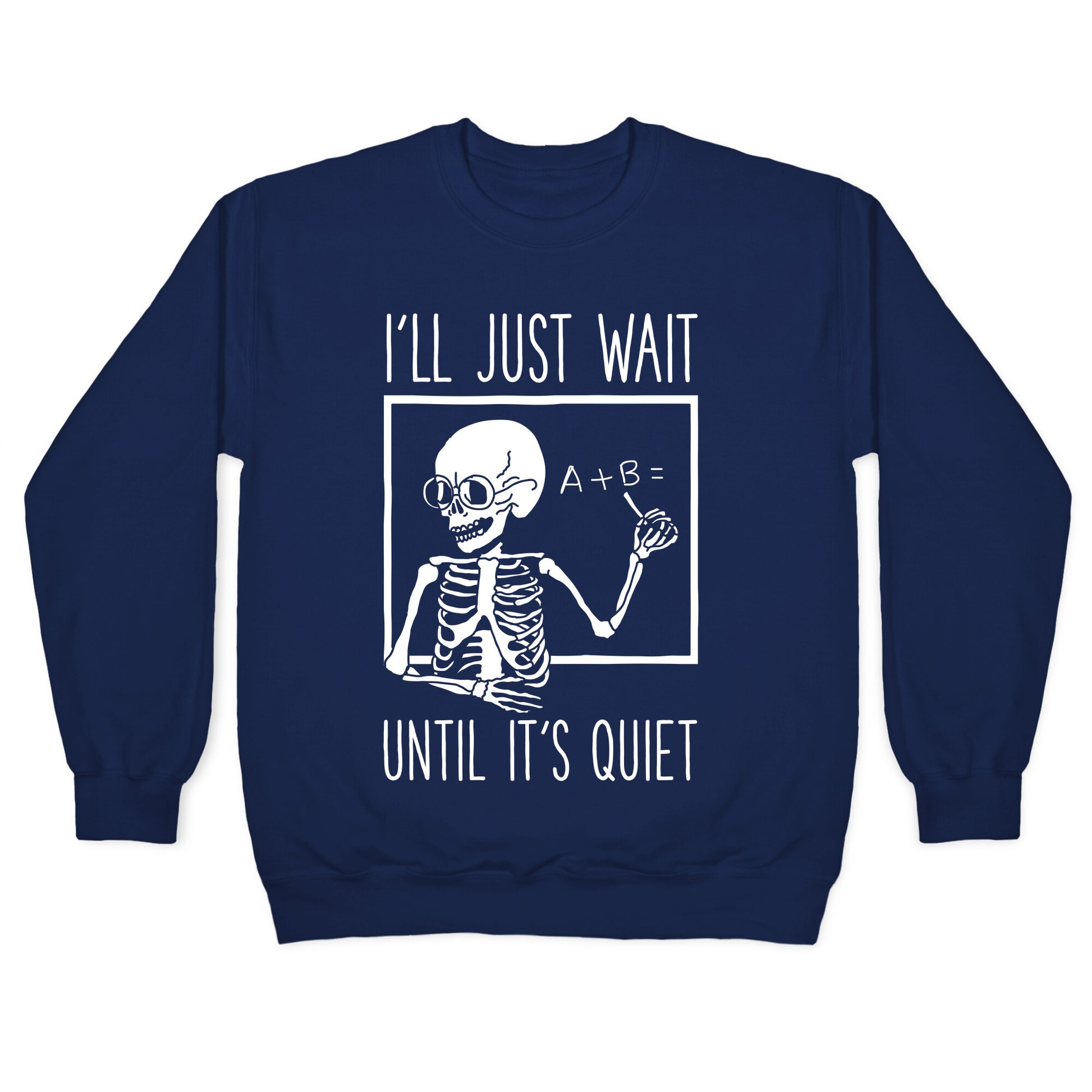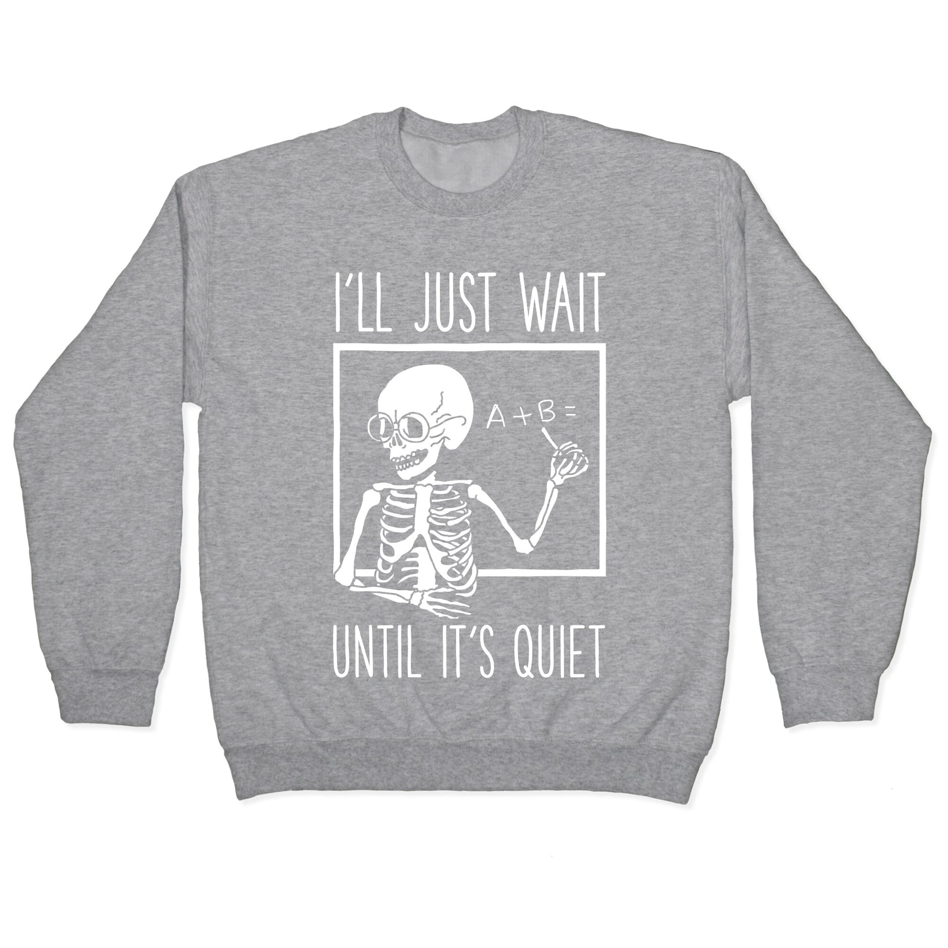 Are you tired of waiting for your noisy friends to simmer down? Say no more with this humorous 'I'll Just Wait Until It's Quiet' tee. Perfect for teachers, introverts, and anyone who values peace and quiet, this design captures the essence of biding your time until the chaos subsides. Made with high-quality materials, this shirt is both comfortable and durable, perfect for daily wear or as a gift for that special someone who shares your love for tranquility. With its bold lettering and eye-catching design, this tee is sure to turn heads and start conversations. So why wait? Get yours today and show the world that silence truly is golden!"Our Unisex Crewneck Sweatshirt is made from a soft 8-ounce fabric, and they feature a crew neck, with sleeve and bottom hems for durability. Great for layering. Preshrunk for your convenience! Printed in the USA. Made with 50% Cotton and 50% Polyester.